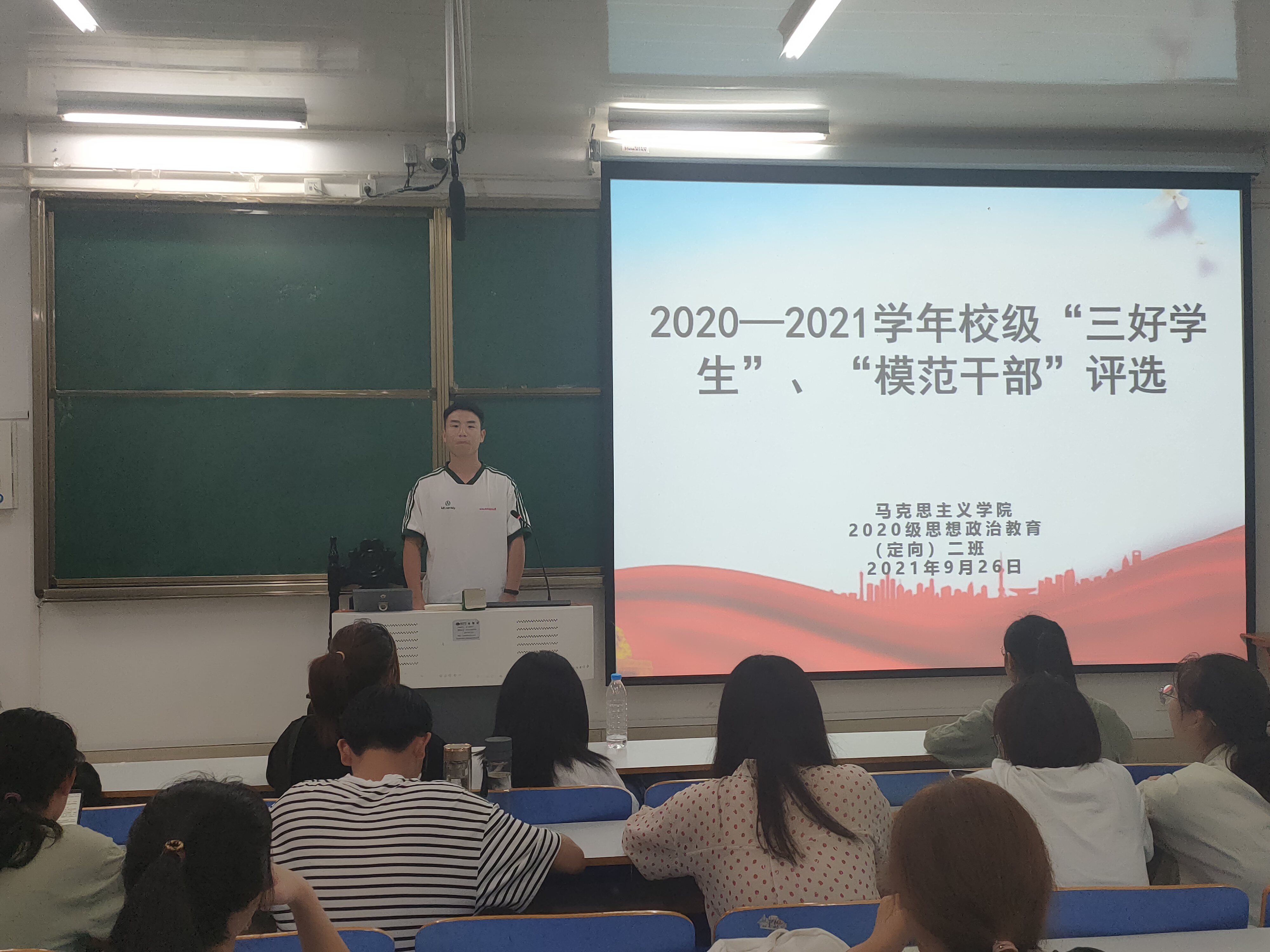 9月26日晚上,德赢AC米兰官网2020级思想政治教育定向二班“三好学生”“模范干部”评选会在社科楼514教室顺利召开。定向二班全体同学参与本次会议。