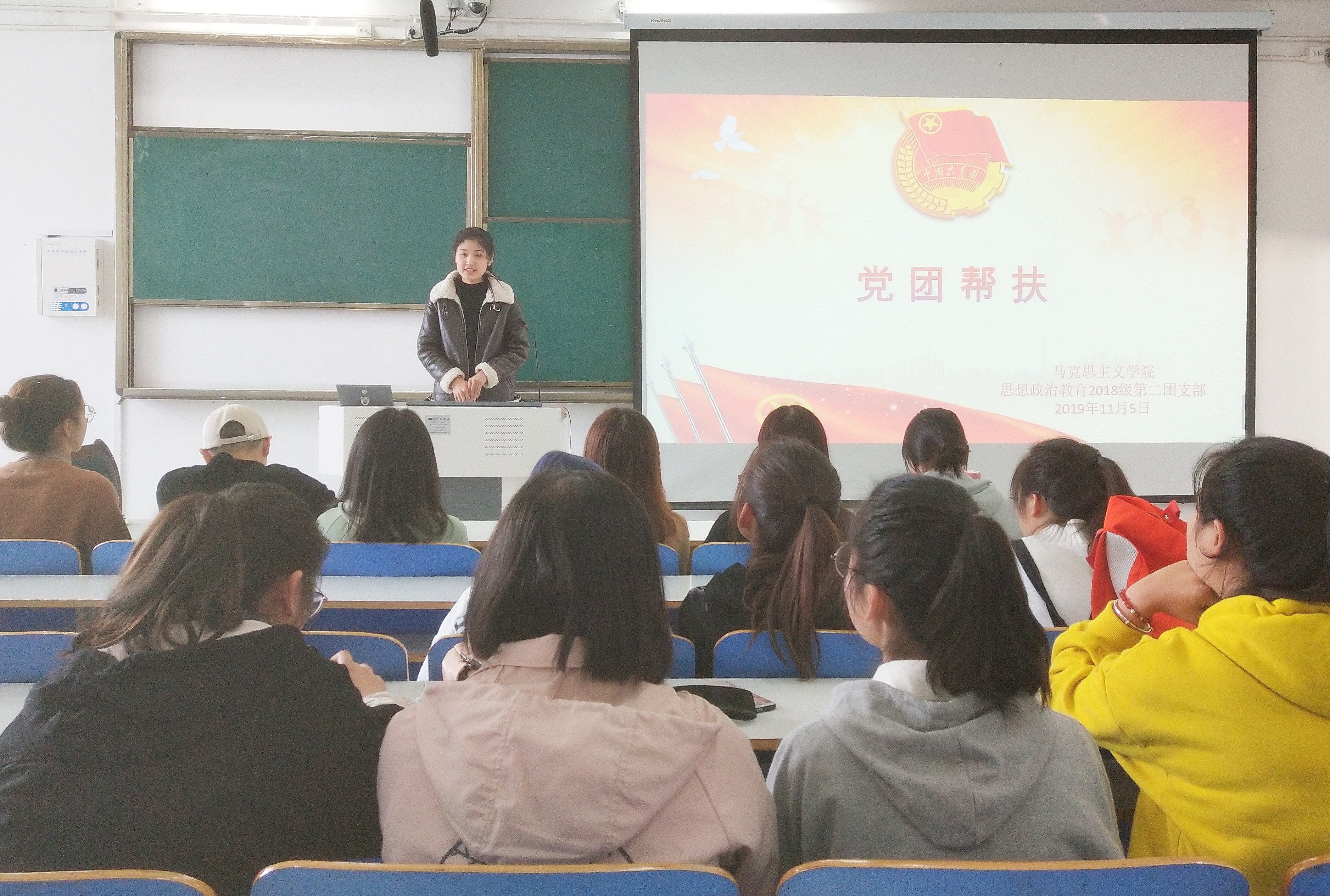 11月5日上午,德赢官网2018级思想政治教育二班在社科楼514教室顺利开展了党团帮扶活动。我班邀请学生党员代表赵亚茹前来参加本次交流活动。活动由团支书黄子晋主持。
