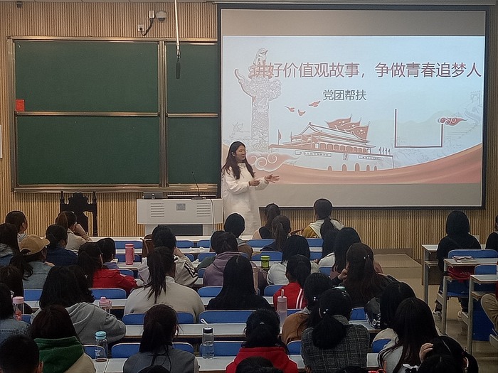 首先,秦康怡向同学们简单介绍了刘冰并对她的到来表示热烈欢迎。接着,刘冰用幽默风趣的语言向大家传授演讲的技巧和经验。她提到,演讲内容要结构合理,详略得当。演讲时要保持警觉,选准话题,进而组合材料。演讲者要保持充沛的情感,以情夺人,语言要生动活泼,短小精悍,逻辑严密,从而感染听众,达到交流情感的目的。并鼓励大家积极参与,锻炼自己,不留遗憾。最后,秦康怡对刘冰的分享表示由衷感谢,并鼓励同学们踊跃参与到讲价值观故事系列活动中,锻炼提高自己,为团支部争光添彩。