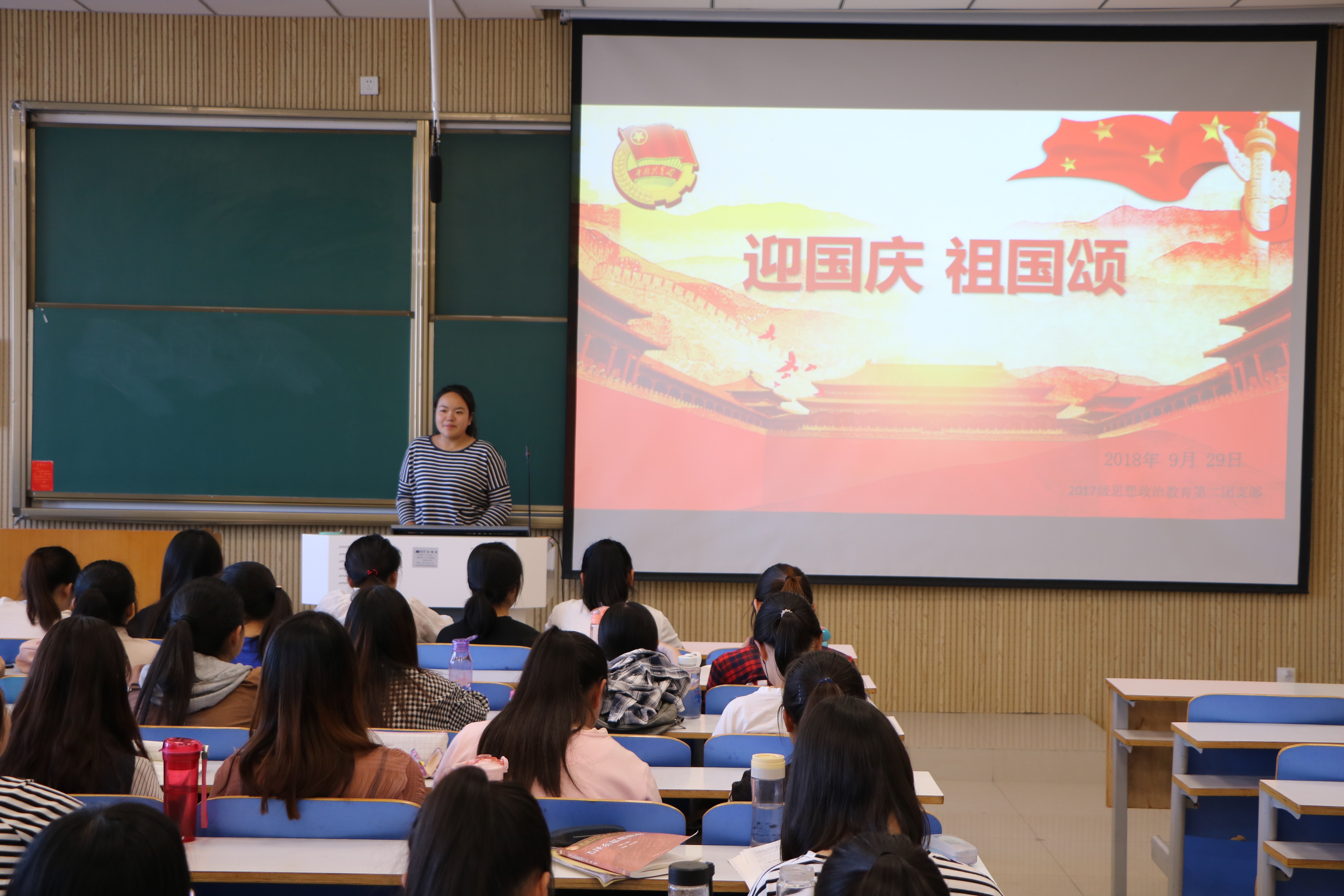 金秋送爽,硕果累累,国庆将至,2017级思想政治教育第二团支部于2018年9月29日,在社科楼515教室开展“迎国庆,祖国颂”主题活动喜迎伟大祖国的第69个华诞。