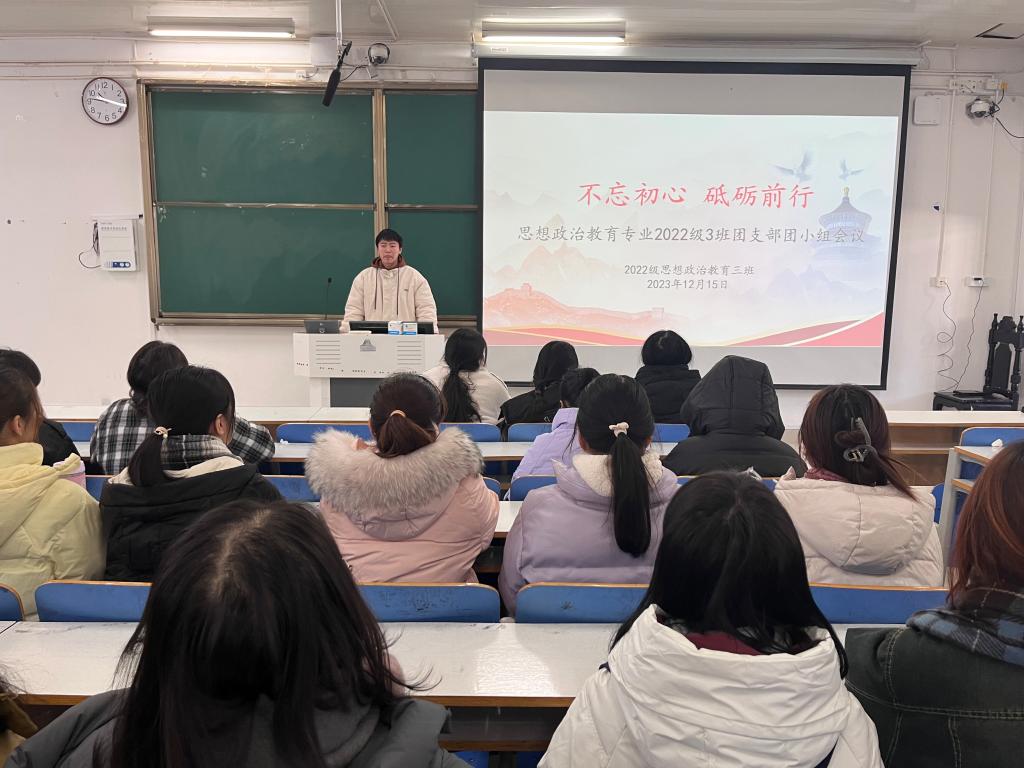 12月15日下午,德赢AC米兰官网2022级思想政治教育三班在社科楼514教室召开“不忘初心,砥砺前行”主题班会。德赢官网2022级思想政治教育三班全体成员共同参加此次班会。班会由班长余浩洋主持。