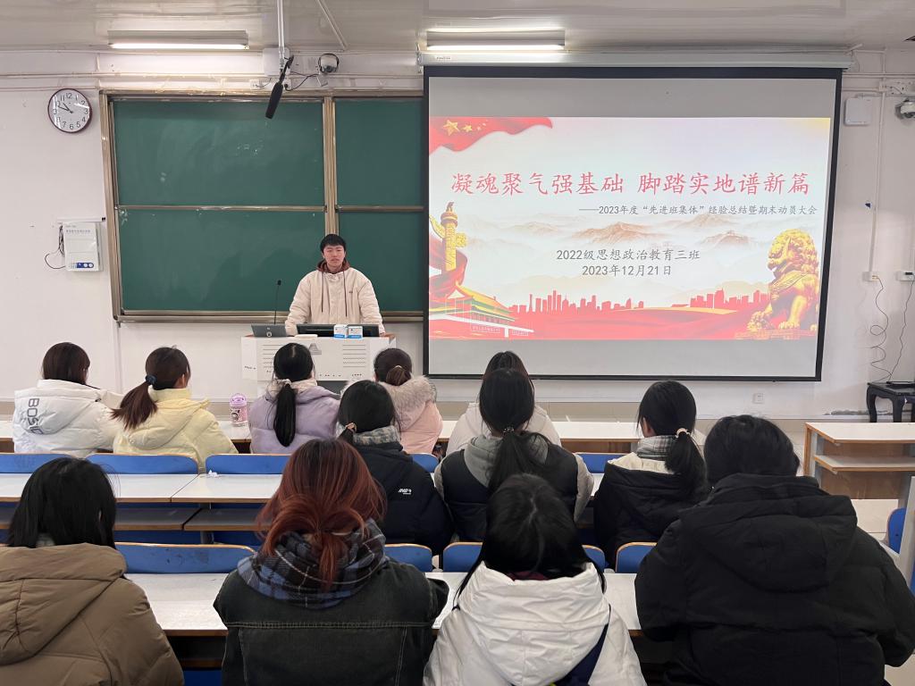 12月21日上午,德赢AC米兰官网2022级思想政治教育三班在社科楼514教室召开“凝魂聚气强基础,脚踏实地谱新篇”主题班会。德赢官网2022级思想政治教育三班全体成员共同参与此次班会,班会由班长余浩洋主持。