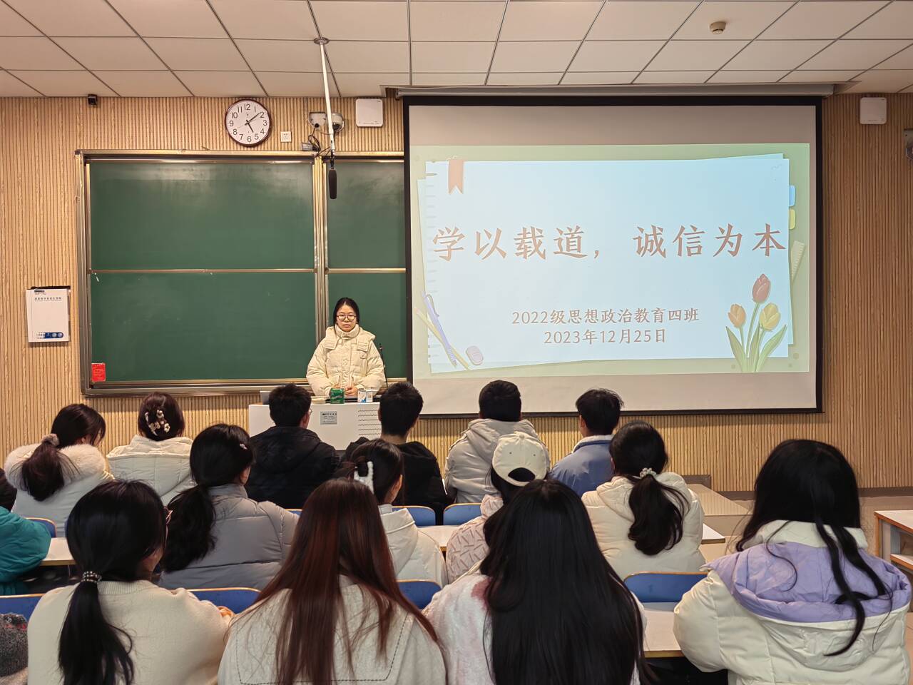 为提升我班学生学习氛围,激发学生学习内驱力, 12月25日下午,德赢AC米兰官网2022级思想政治教育四班在社科楼515教室召开“学以载道,诚信为本”期末动员主题班会。德赢官网2022级思想政治教育四班全体同学参与本次班会。本次会议由班长牛志杰主持。