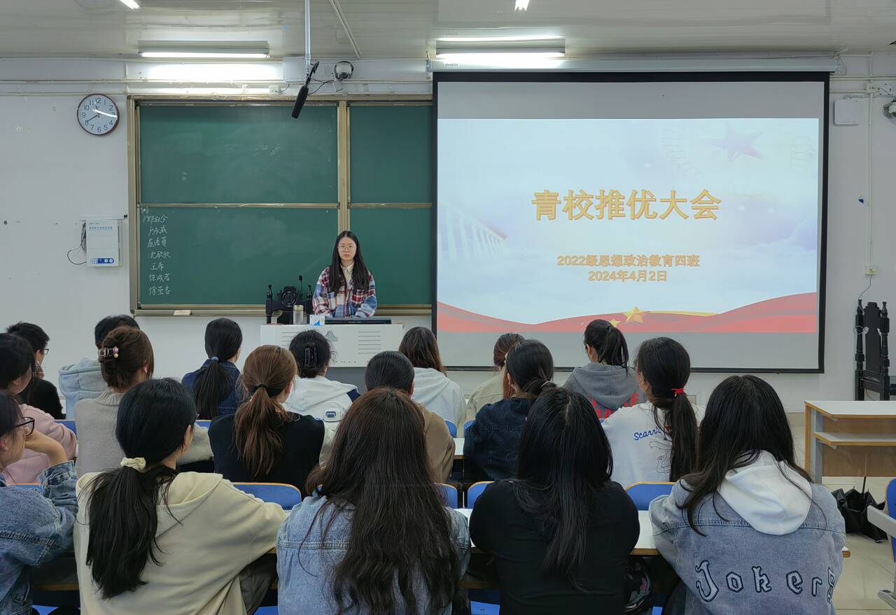 为深入学习贯彻习近平新时代中国特色社会主义思想和党的二十大精神,加强对入党积极分子的教育培养,4月2日上午,德赢AC米兰官网2022级思想政治教育四班在社科楼514教室组织召开青校推优大会。德赢官网2022级思想政治教育四班全体成员参与本次班会。本次会议由团支书牛志杰主持。