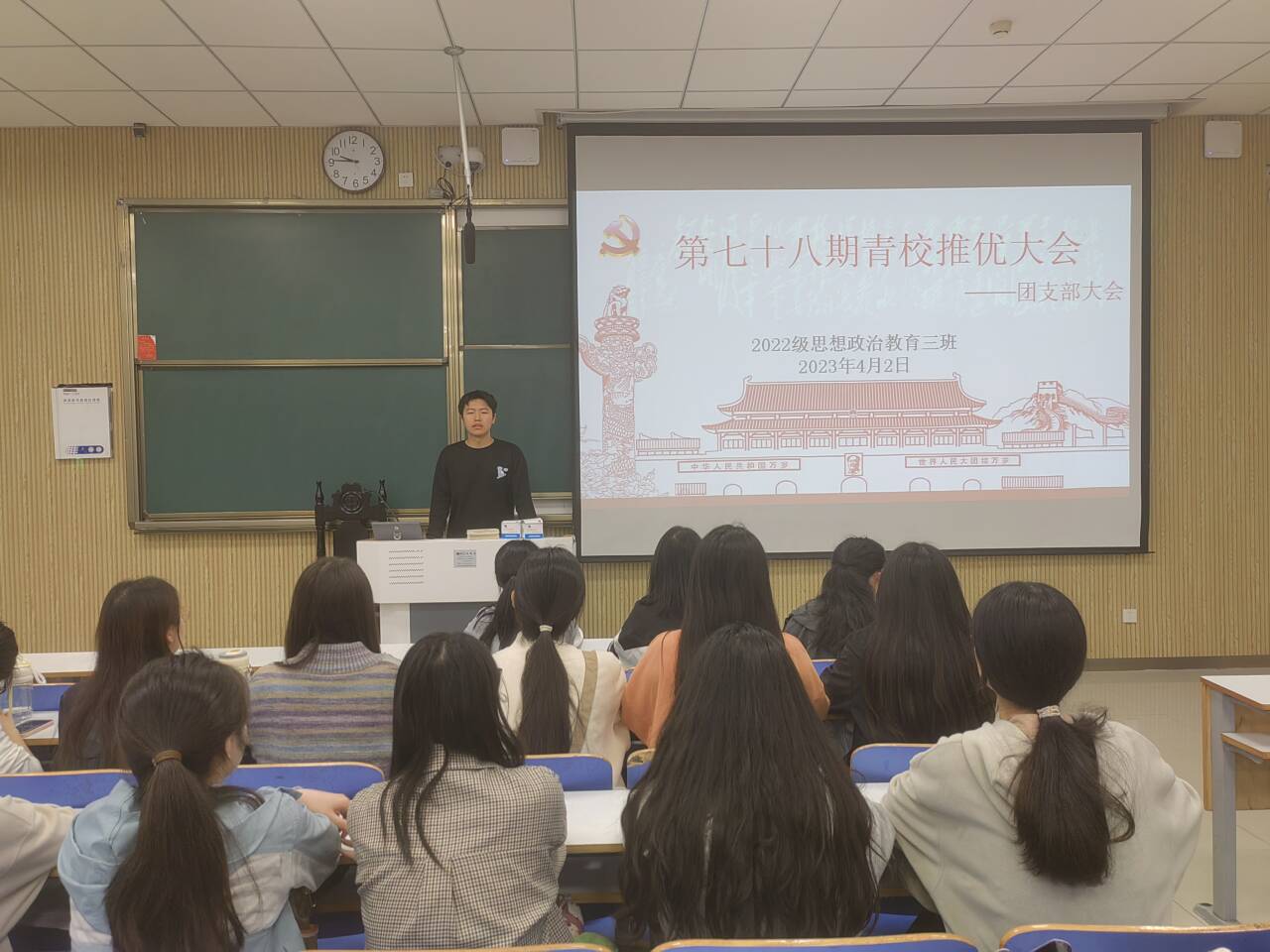 4月2日上午,德赢AC米兰官网2022级思想政治教育三班在社科楼515教室召开“青年共产主义学校”推优大会。德赢官网2022级思想政治教育三班全体同学共同参与此次大会。大会由团支书余浩洋主持。