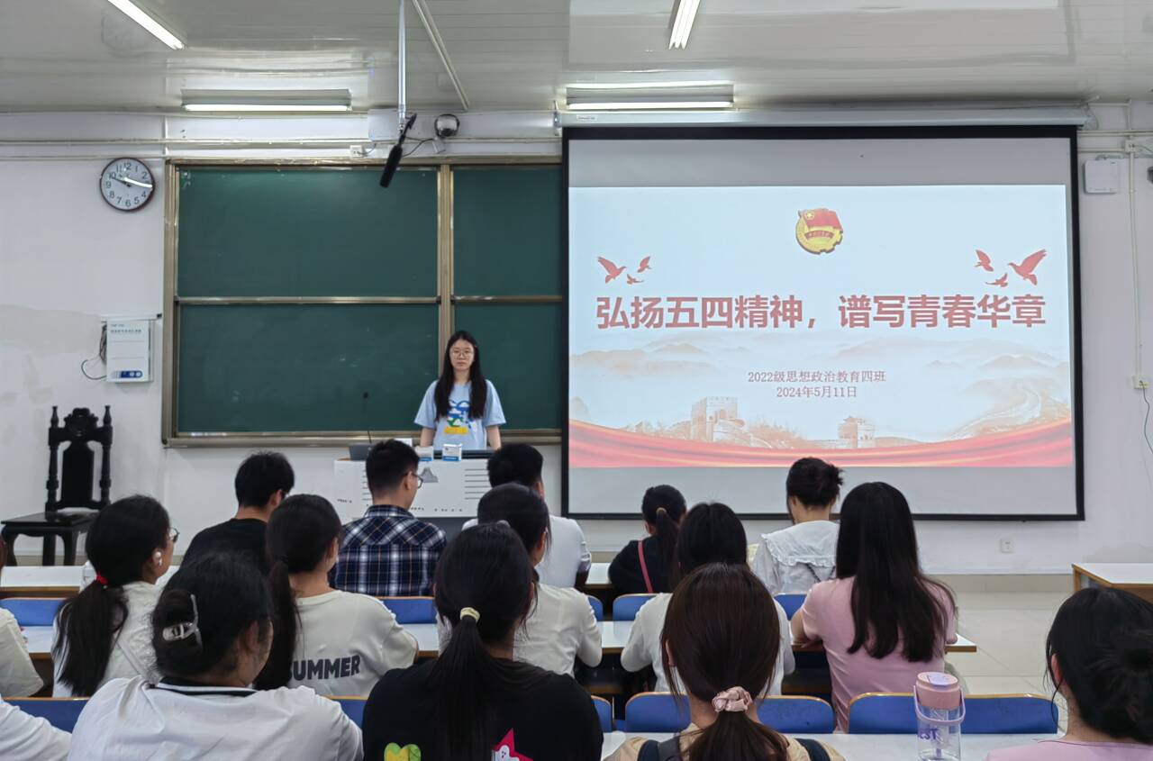 5月11日上午,德赢AC米兰官网2022级思想政治教育四班在社科楼514教室组织召开“弘扬五四精神,谱写青春华章”主题团课。德赢官网2022级思想政治教育四班全体成员参与本次团课。本次团课由团支书牛志杰主持。