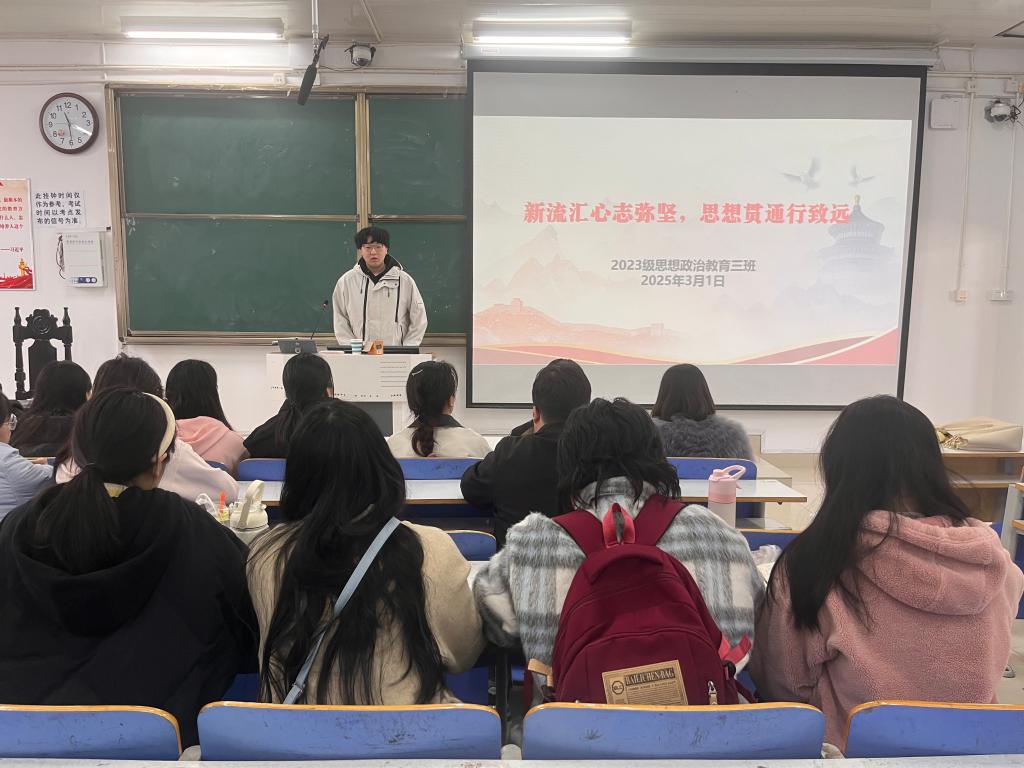 3月1日上午,德赢AC米兰官网2023级思想政治教育三班在社科楼515召开“新流汇心志弥坚,思想贯通行致远”主题团课。德赢官网2023级思想政治教育三班全体同学共同参与本次团课,团课由团支书郝瀚主持。