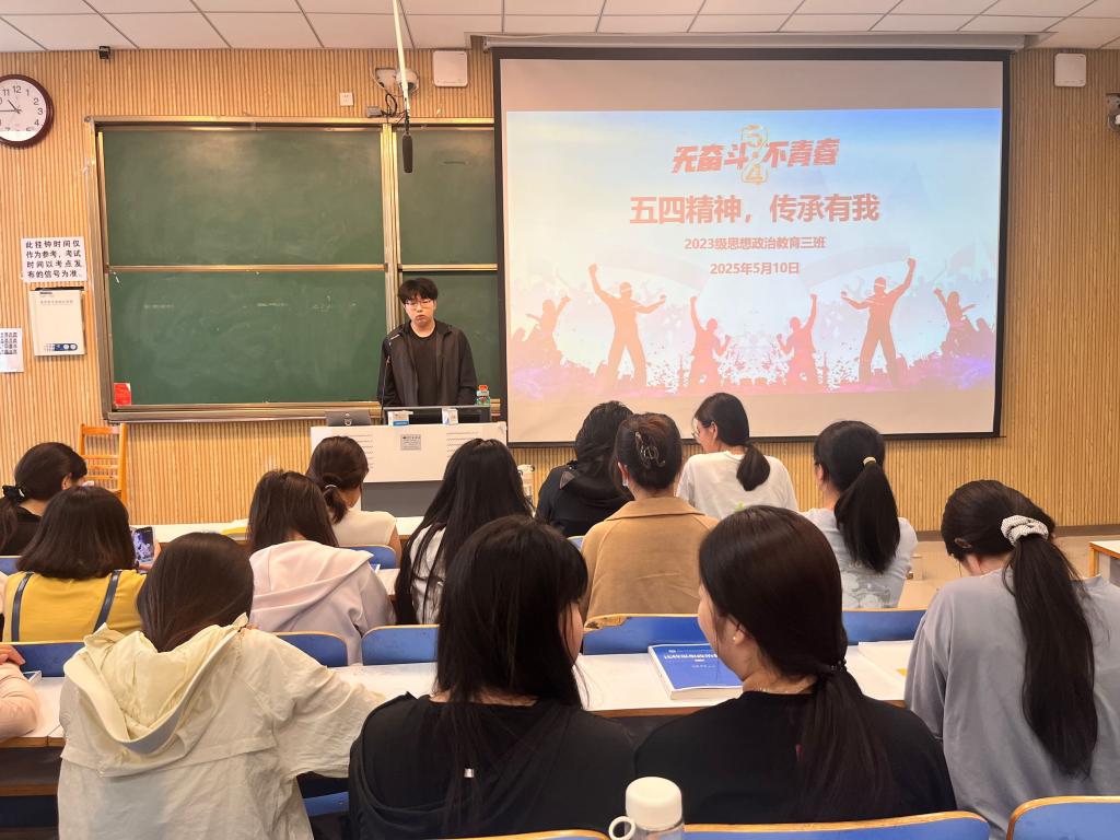 为传承和弘扬担当精神,5月10日上午,德赢AC米兰官网2023级思想政治教育三班在社科楼515召开“五四精神,传承有我”主题团课。德赢官网2023级思想政治教育三班全体同学共同参与本次团课,团课由团支书郝瀚主持。
