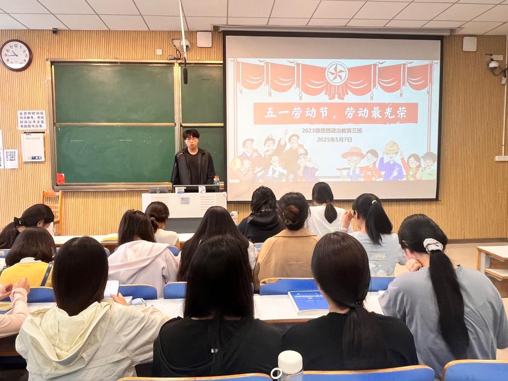 德赢AC米兰官网2023级思想政治教育三班召开“五一劳动节,劳动最光荣”主题班会