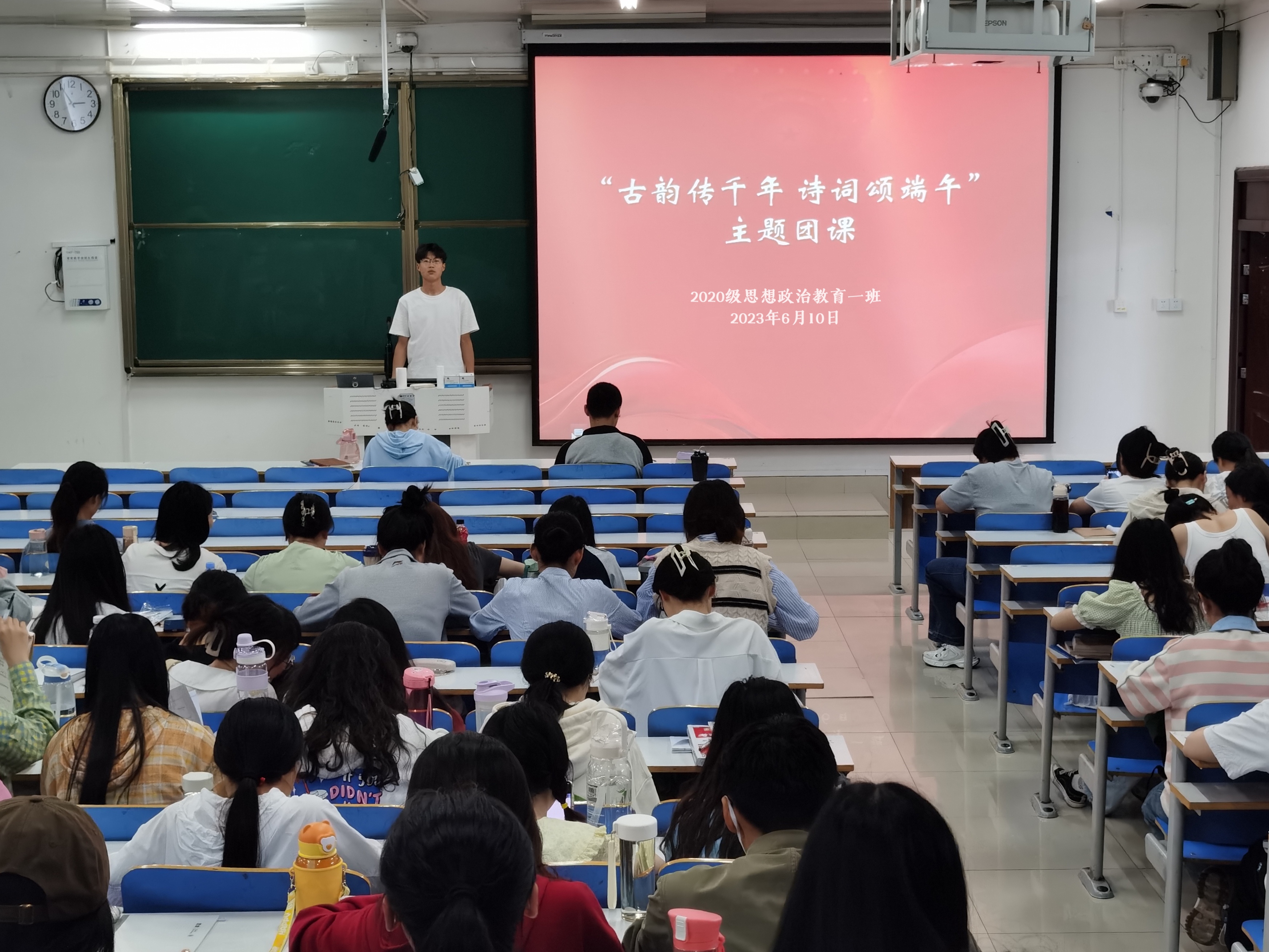6月10日下午,德赢AC米兰官网2020级思想政治教育一班团支部在社科楼514教室开展“古韵颂千年,诗词颂端午”主题团课,2020级思想政治教育一班全体团员参加此次团课。团课由团支部副书记白帅豪主持。