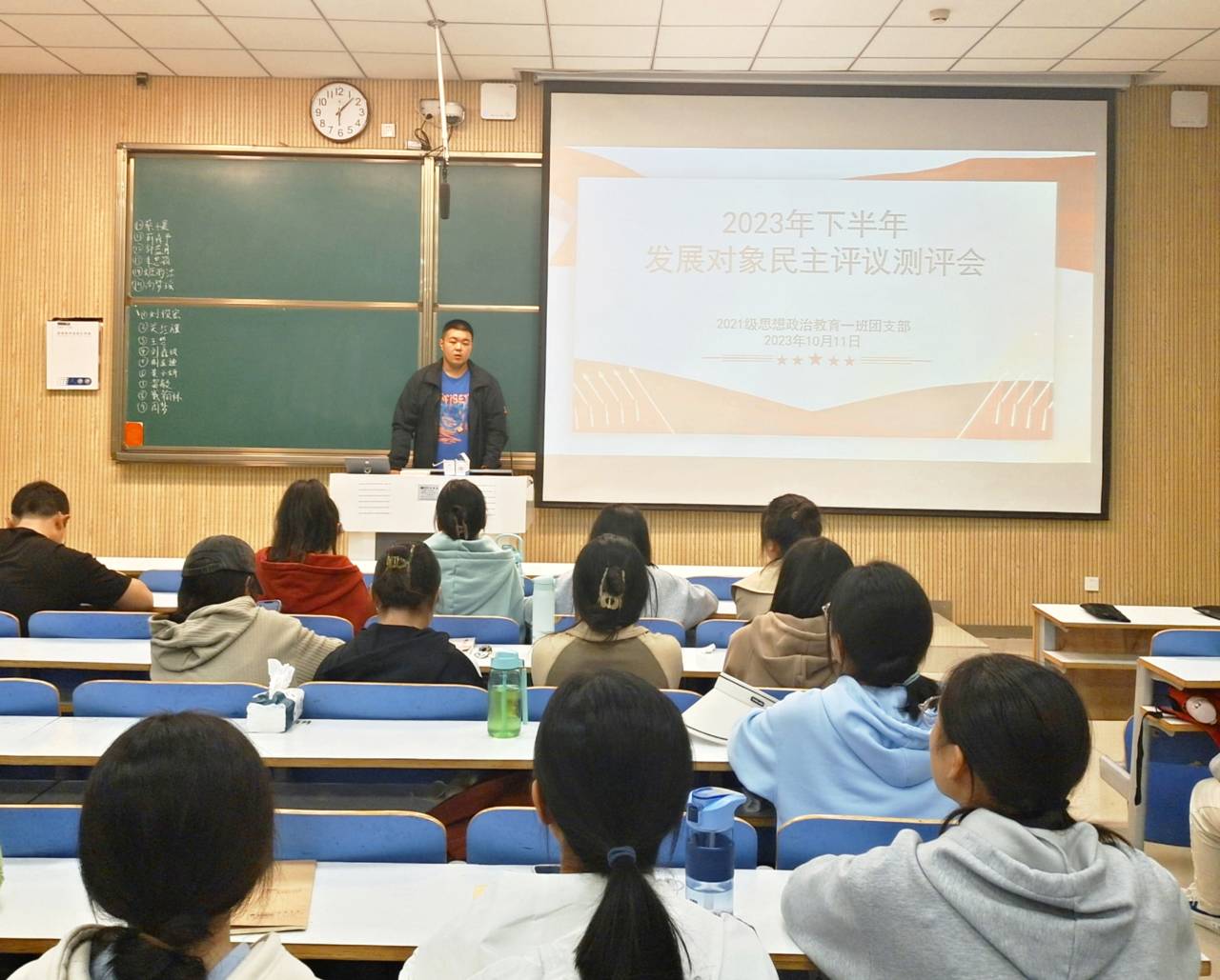 10月11日下午,德赢AC米兰官网2021级思想政治教育一班在社科楼515教室召开2023年下半年发展对象民主评议测评会。2021级思想政治教育一班全体团员共同参加本次会议。会议由团支书戴翰林主持。