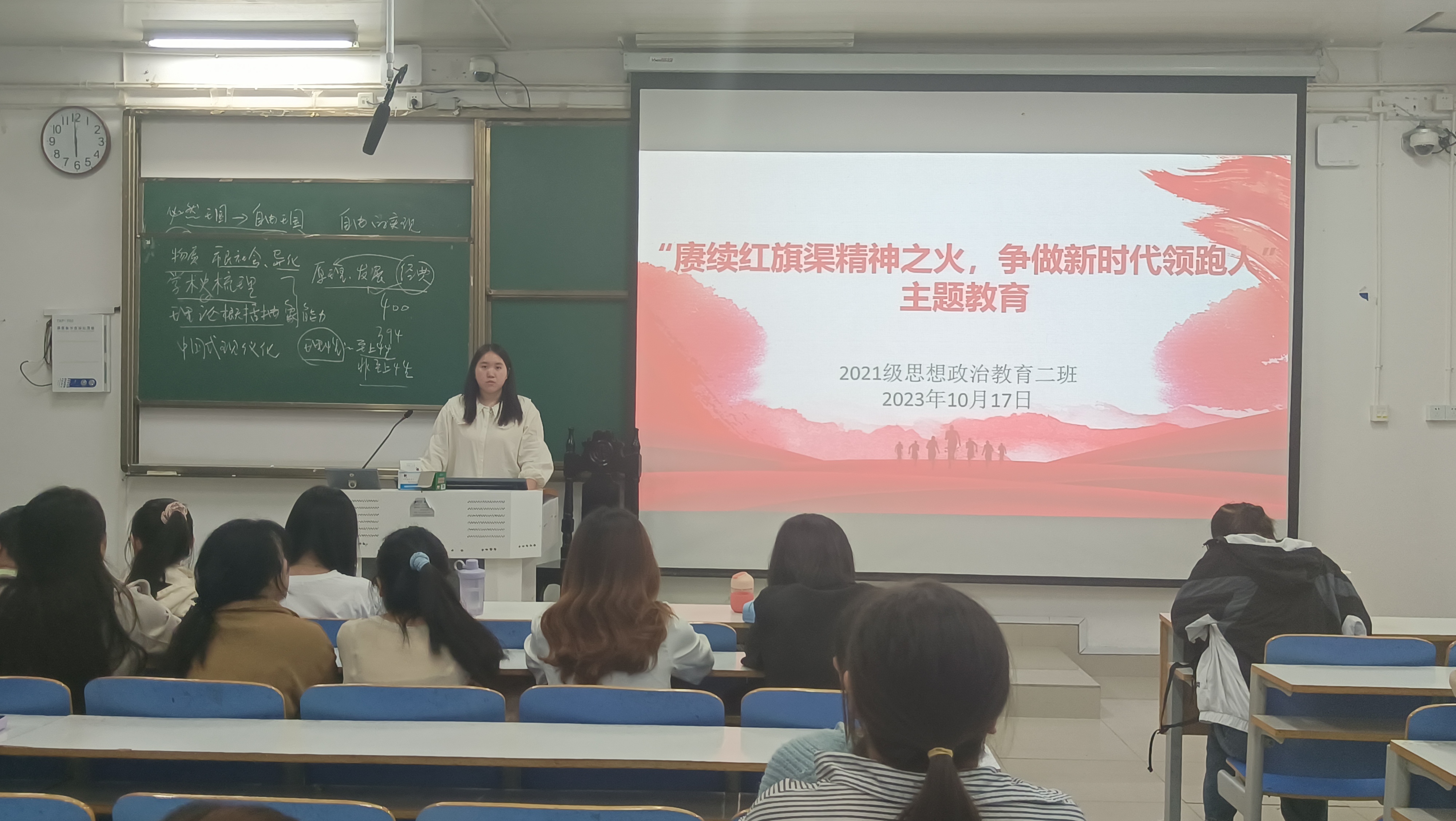 10月17日下午,德赢AC米兰官网2021级思想政治教育二班在社科楼514教室召开“赓续红旗渠精神之火,争做新时代领跑人”主题团课。2021级思想政治教育二班全体团员参加此次团课。团课由团支书王婧欣主持。