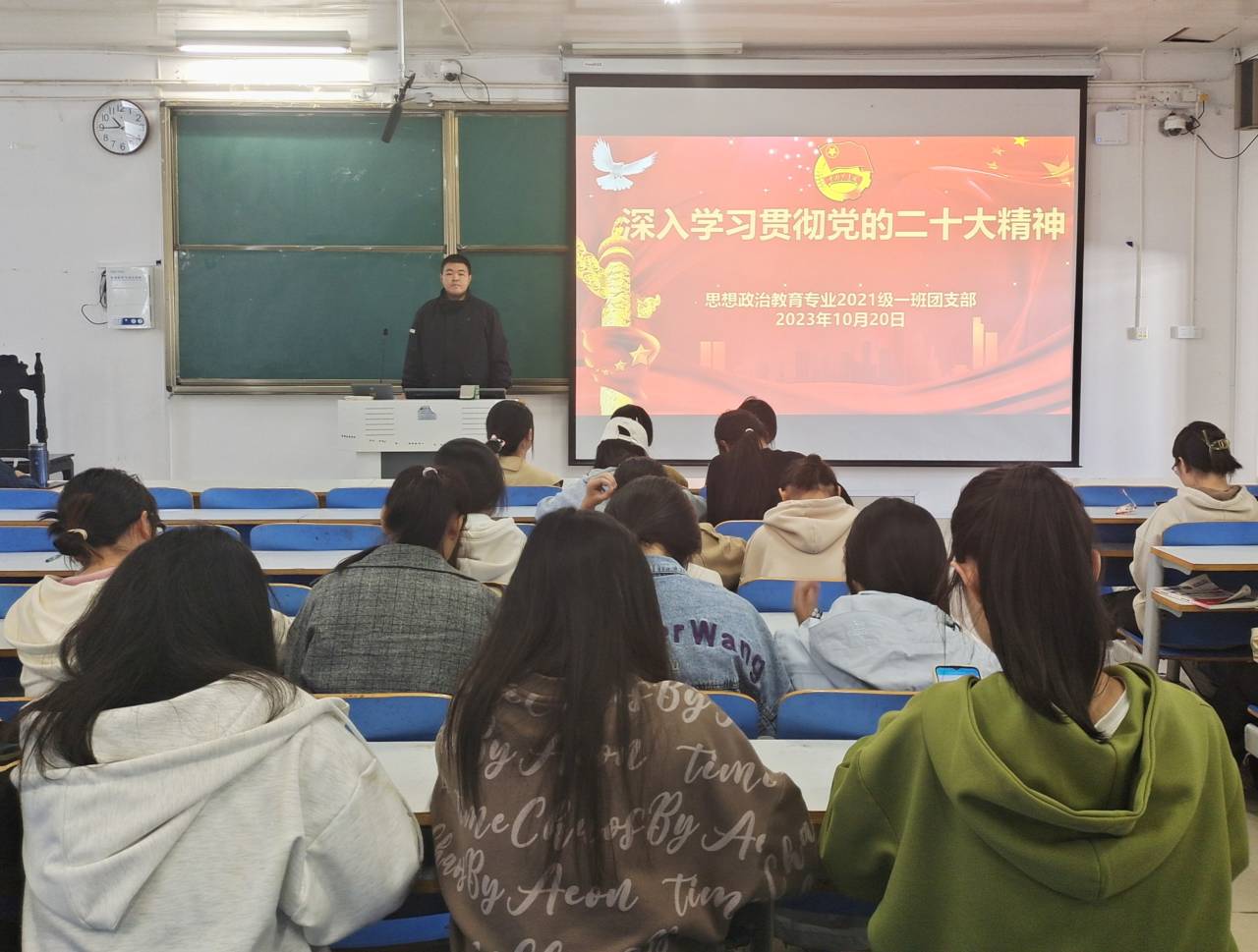 10月20日上午,德赢AC米兰官网2021级思想政治教育一班在社科楼514教室召开“深入学习贯彻党的二十大精神”主题团课。2021级思想政治教育一班全体团员参加了本次团课。团课由团支书戴翰林主持。
