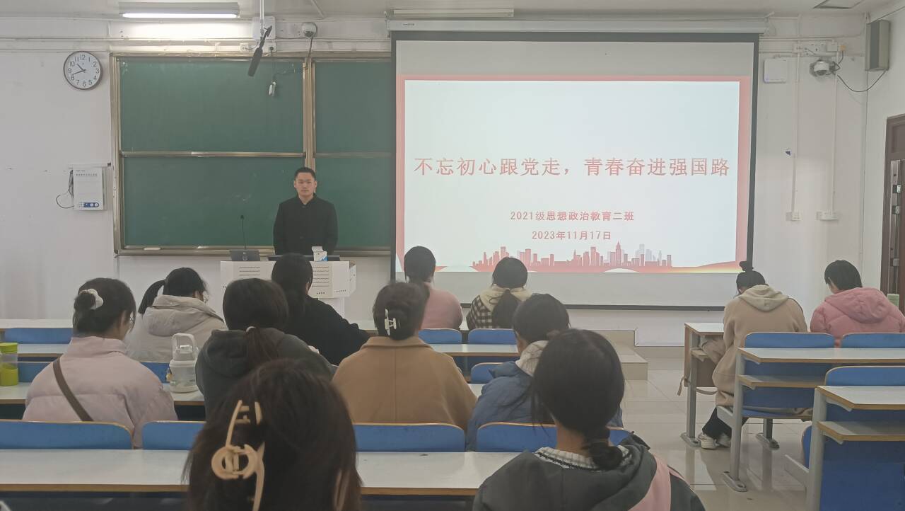11月17日下午,德赢AC米兰官网2021级思想政治教育二班在社科楼514教室召开“不忘初心跟党走,青春奋进强国路”主题团课。2021级思想政治教育二班全体团员参加此次团课。团课由副班长任振豪主持。