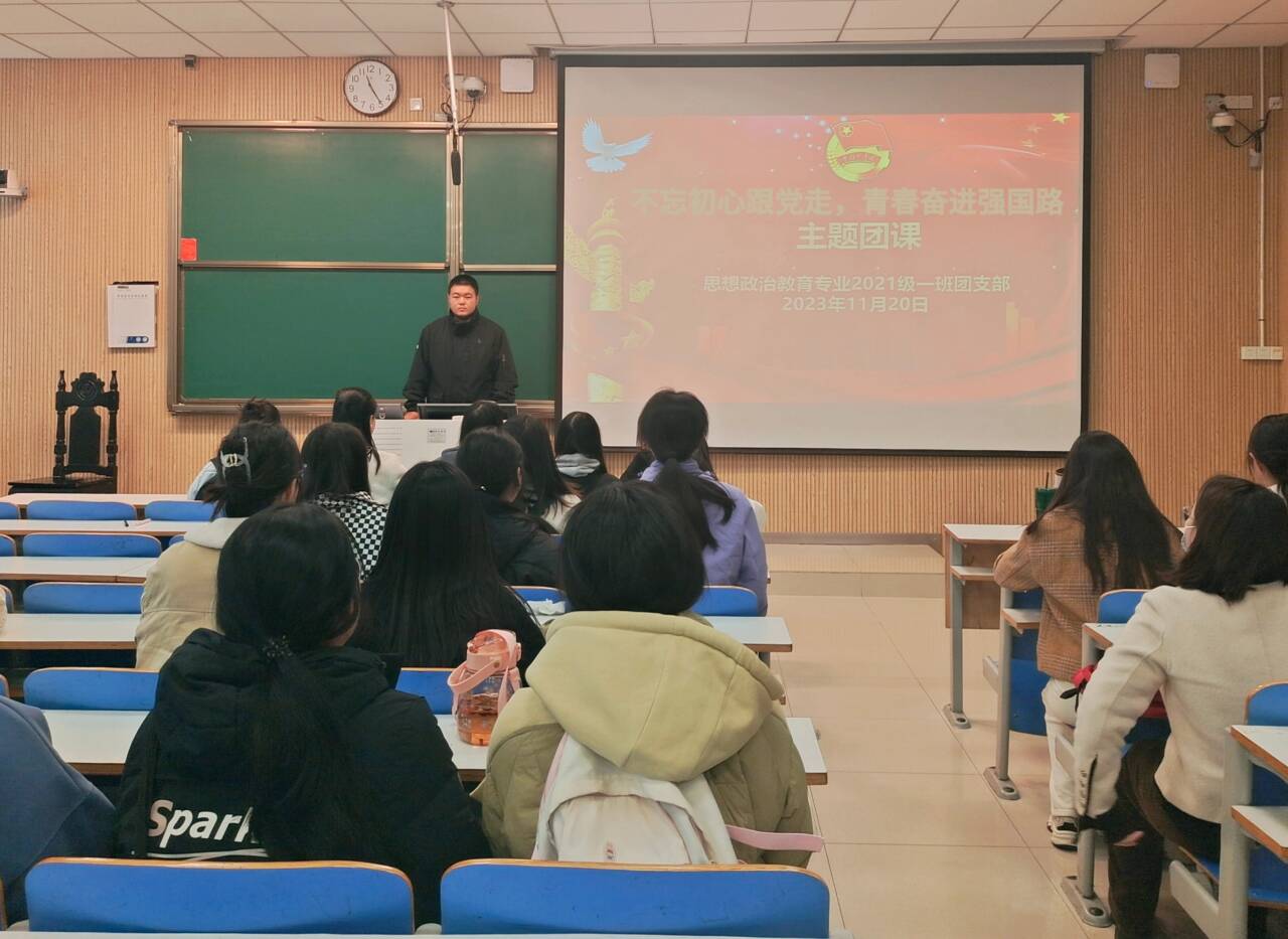 11月20日上午,德赢AC米兰官网2021级思想政治教育一班在社科楼514教室召开“不忘初心跟党走,青春奋进强国路”主题团课。2021级思想政治教育一班全体团员共同参加本次团课,团课由团支书戴翰林主持。