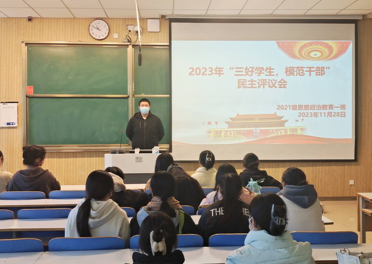 11月28日上午,德赢AC米兰官网2021级思想政治教育一班在社科楼515教室召开2023年“三好学生,模范干部”民主评议会。2021级思想政治教育一班全体成员参加了此次会议。会议由团支书戴翰林主持。