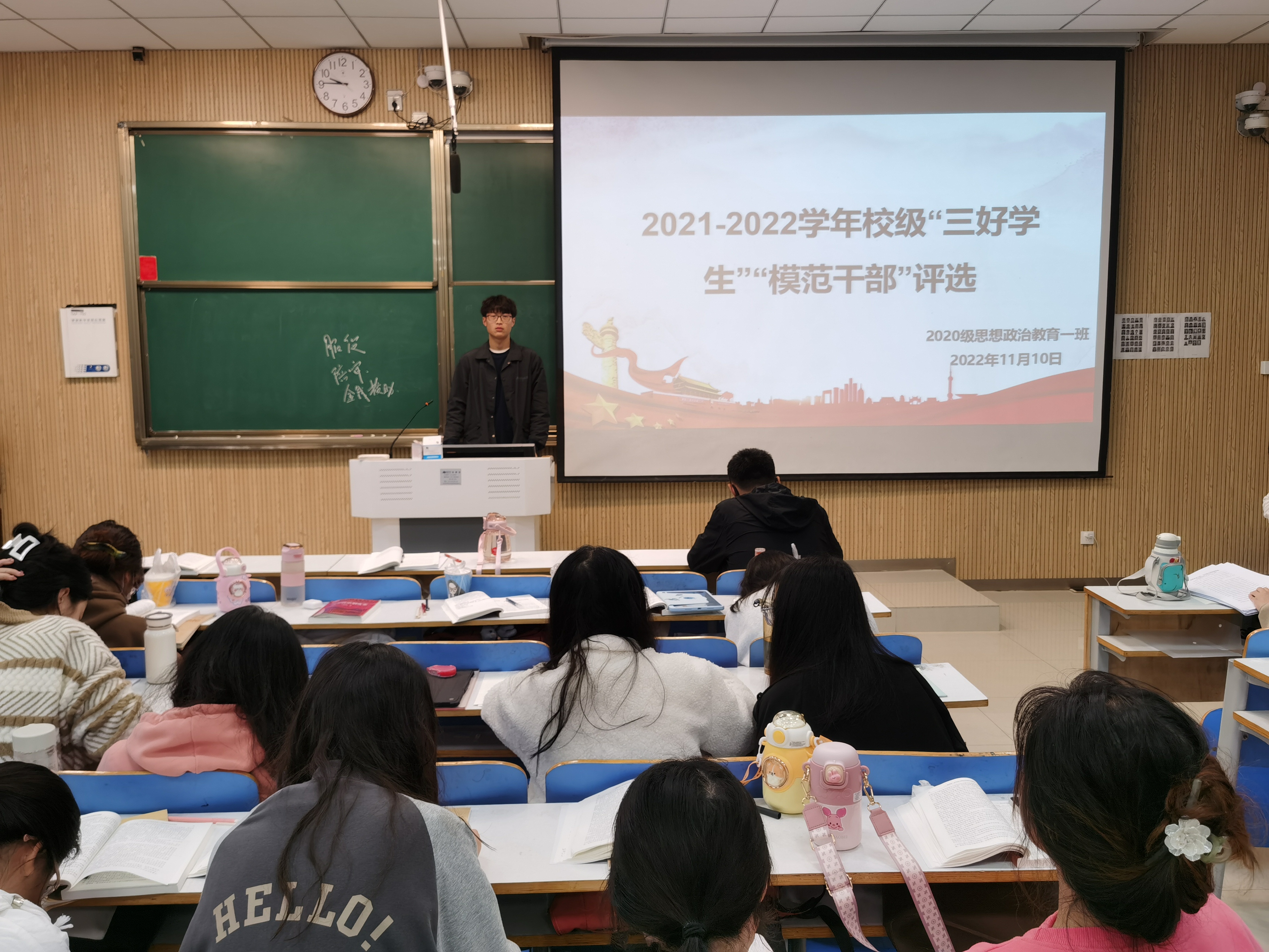 11月10日上午,德赢AC米兰官网2020级思想政治教育一班在社科楼515教室开展2021—2022学年校级“三好学生”“模范干部”评选会,2020级思想政治教育一班全体成员参加此次会议。会议由副班长白帅豪主持。