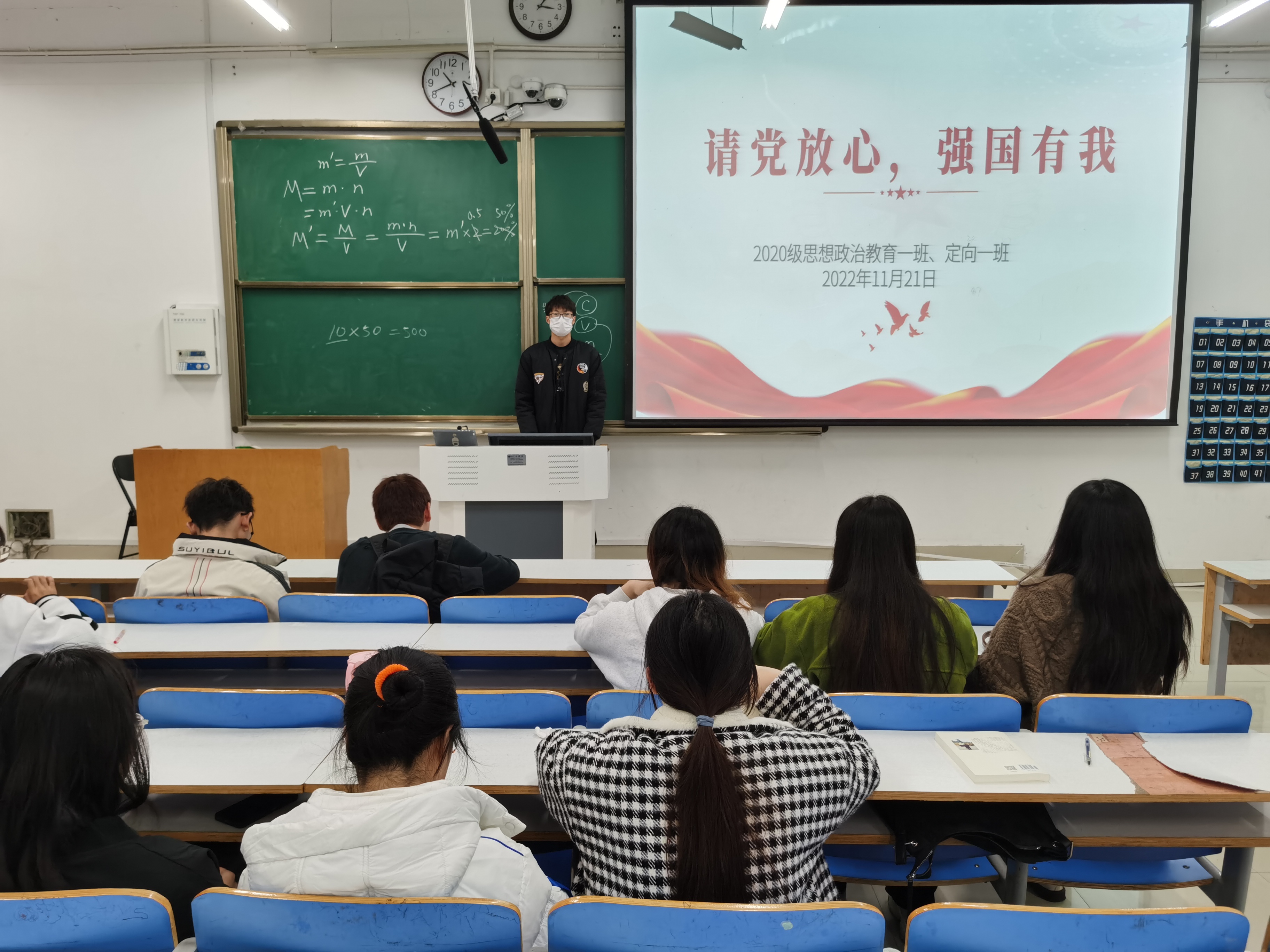 11月21日下午,德赢AC米兰官网2020级思想政治教育一班、定向一班在社科楼415教室召开主题为“请党放心,强国有我”的团支部大会。2020级思想政治教育一班、定向一班全体同学全程参加本次团支部大会,大会由团支部副书记白帅豪主持。