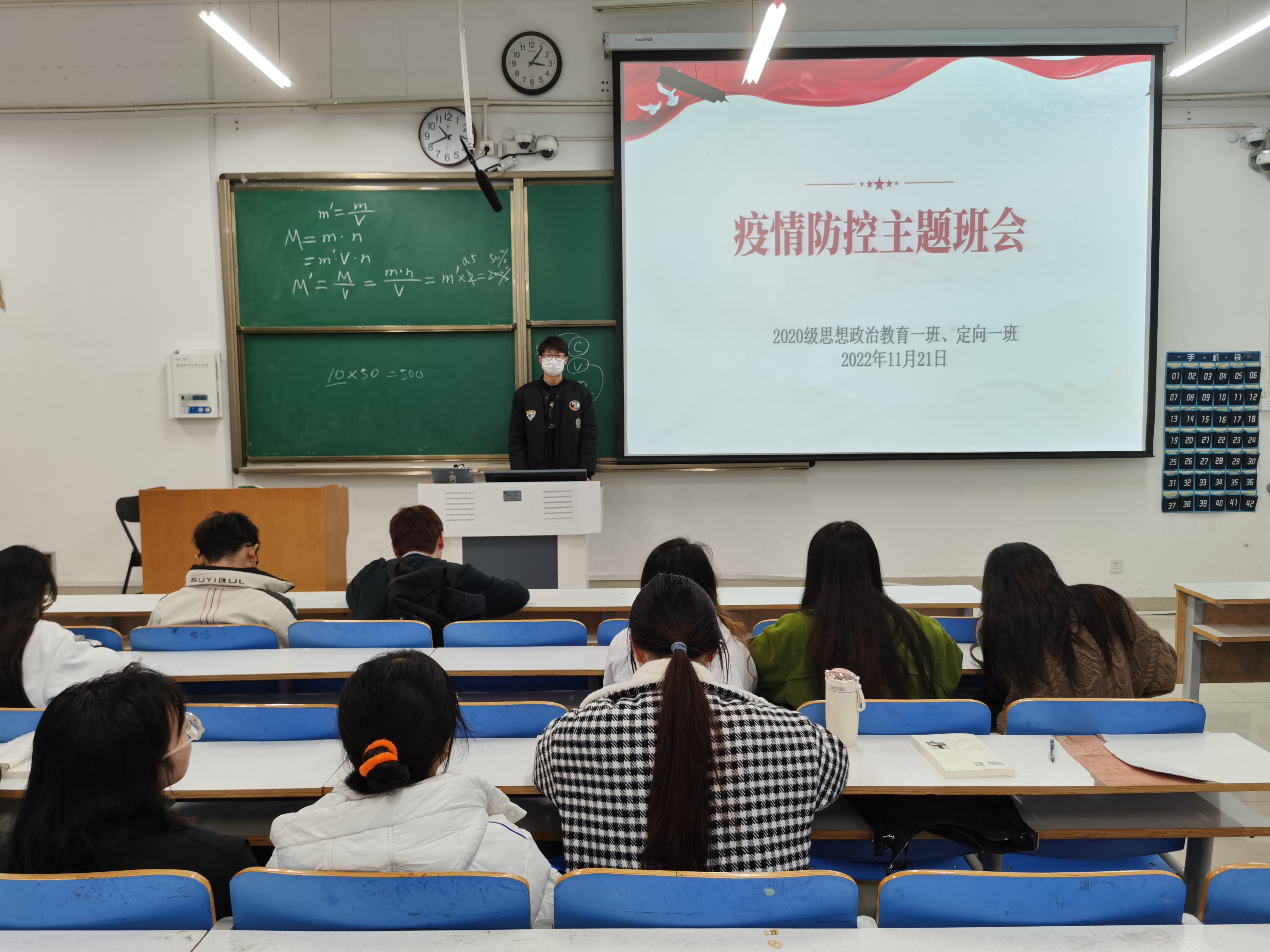 11月21日下午,德赢AC米兰官网2020级思想政治教育一班、定向一班在社科楼415教室召开“疫情防控”主题班会。德赢AC米兰官网2020级思想政治教育一班、定向一班全体同学参加了本次班会,班会由副班长白帅豪主持。