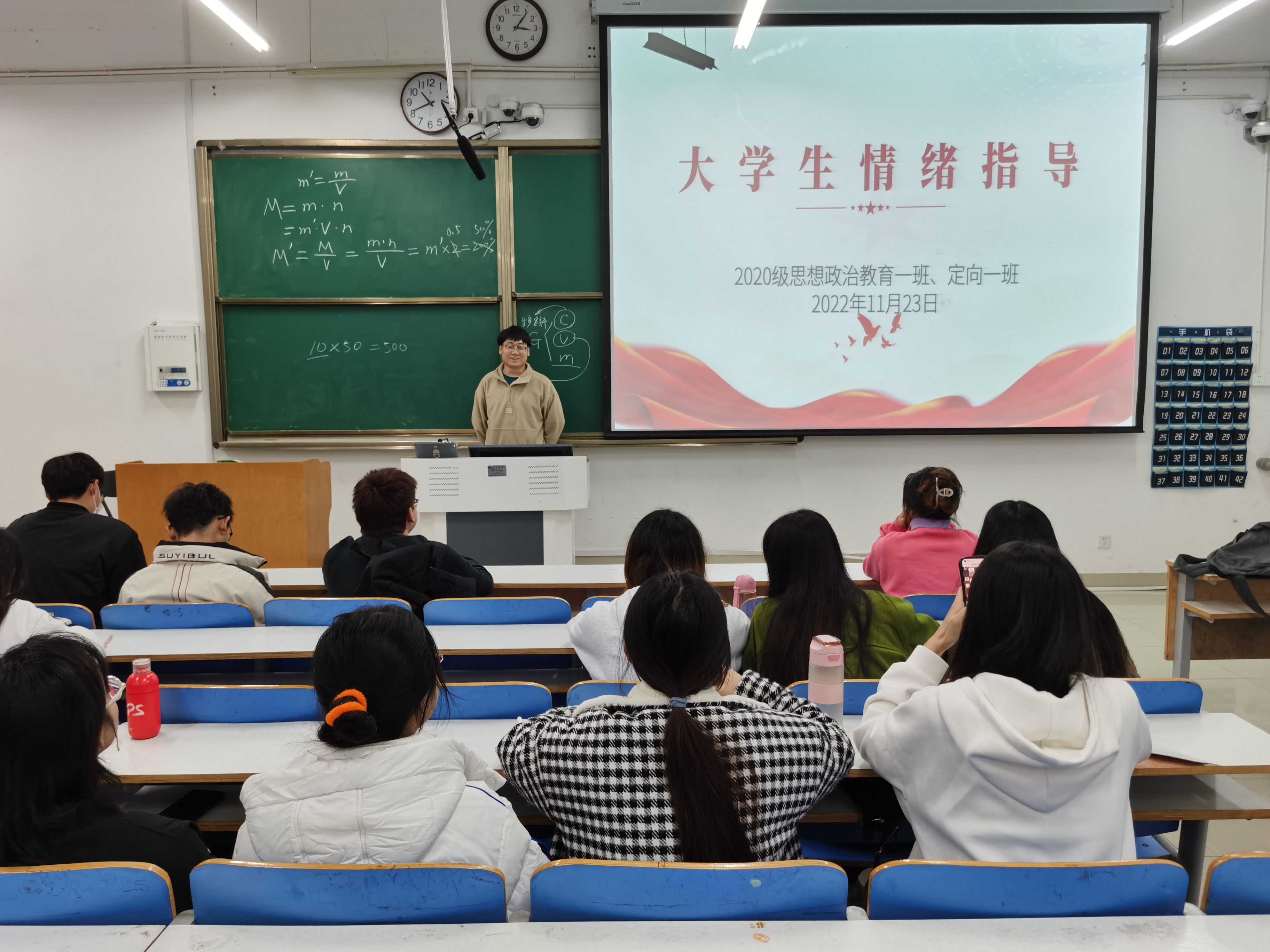 11月23日下午,德赢AC米兰官网2020级思想政治教育一班、定向一班在社科楼415教室顺利举办“大学生情绪指导”心理班会。德赢AC米兰官网2020级思想政治教育一班、定向一班全体学生聆听了此次班会,班会由心理委员王旭主持。