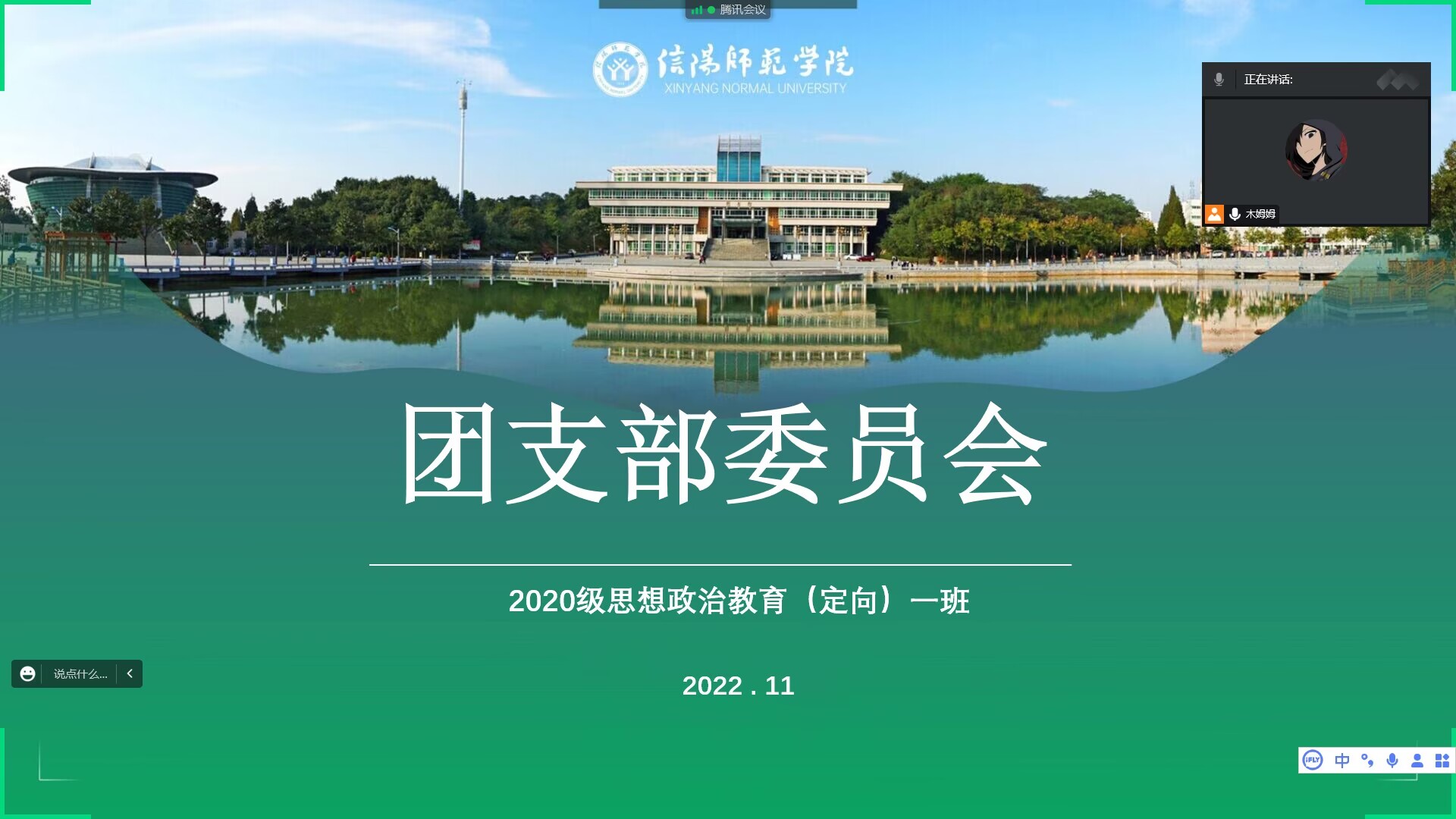 11月24日晚上,德赢AC米兰官网2020级思想政治教育定向一班顺利举办了团支部委员会。会议通过线上的形式举办,2020级思想政治教育定向一班全体团支部委员聆听了此次会议。