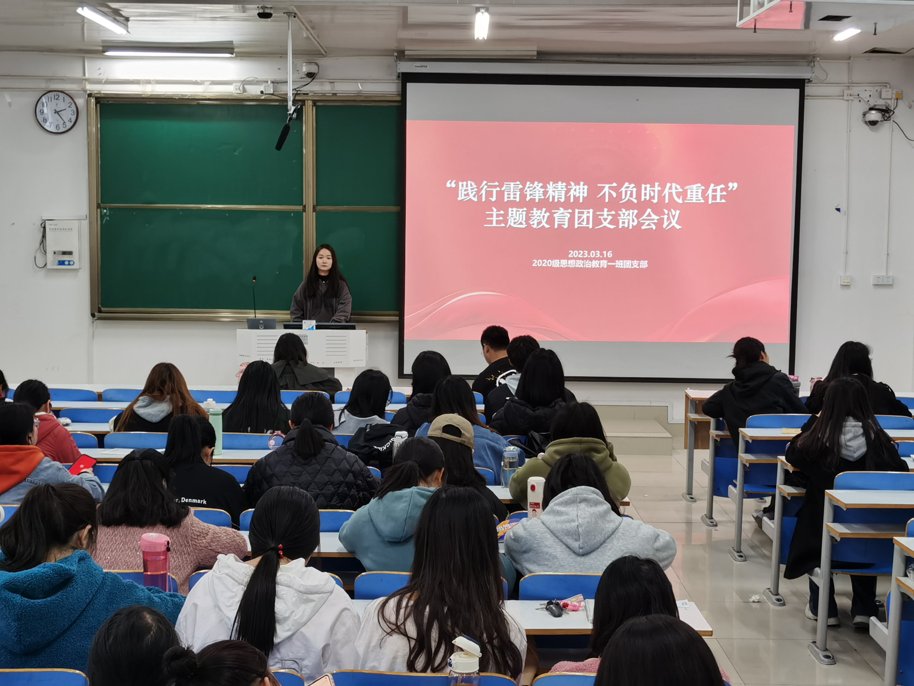 为贯彻落实习近平总书记关于学习雷锋精神和开展志愿服务工作的重要指示精神,加强团支部同学的思想品德教育,3月16日下午,德赢AC米兰官网2020思想政治教育一班在社科楼514教室开展“践行雷锋精神,不负时代重任“主题团课。2020级思想政治教育一班全体团员参加此次团课。团课由团支部书记卢茜雨主持。