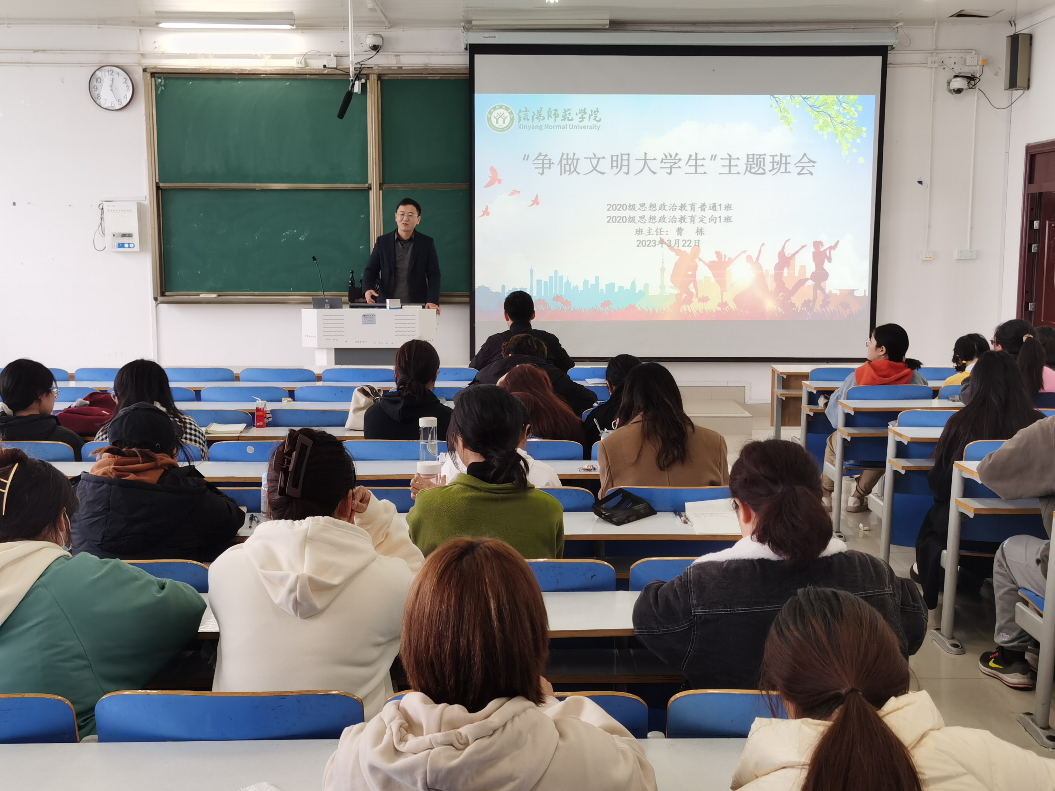 3月22日中午,德赢AC米兰官网2020级思想政治教育一班、定向一班在社科楼514教室召开“争做文明大学生”主题班会。德赢AC米兰官网2020级思想政治教育一班、定向一班全体同学参加本次班会,班会由辅导员曹栋主持。