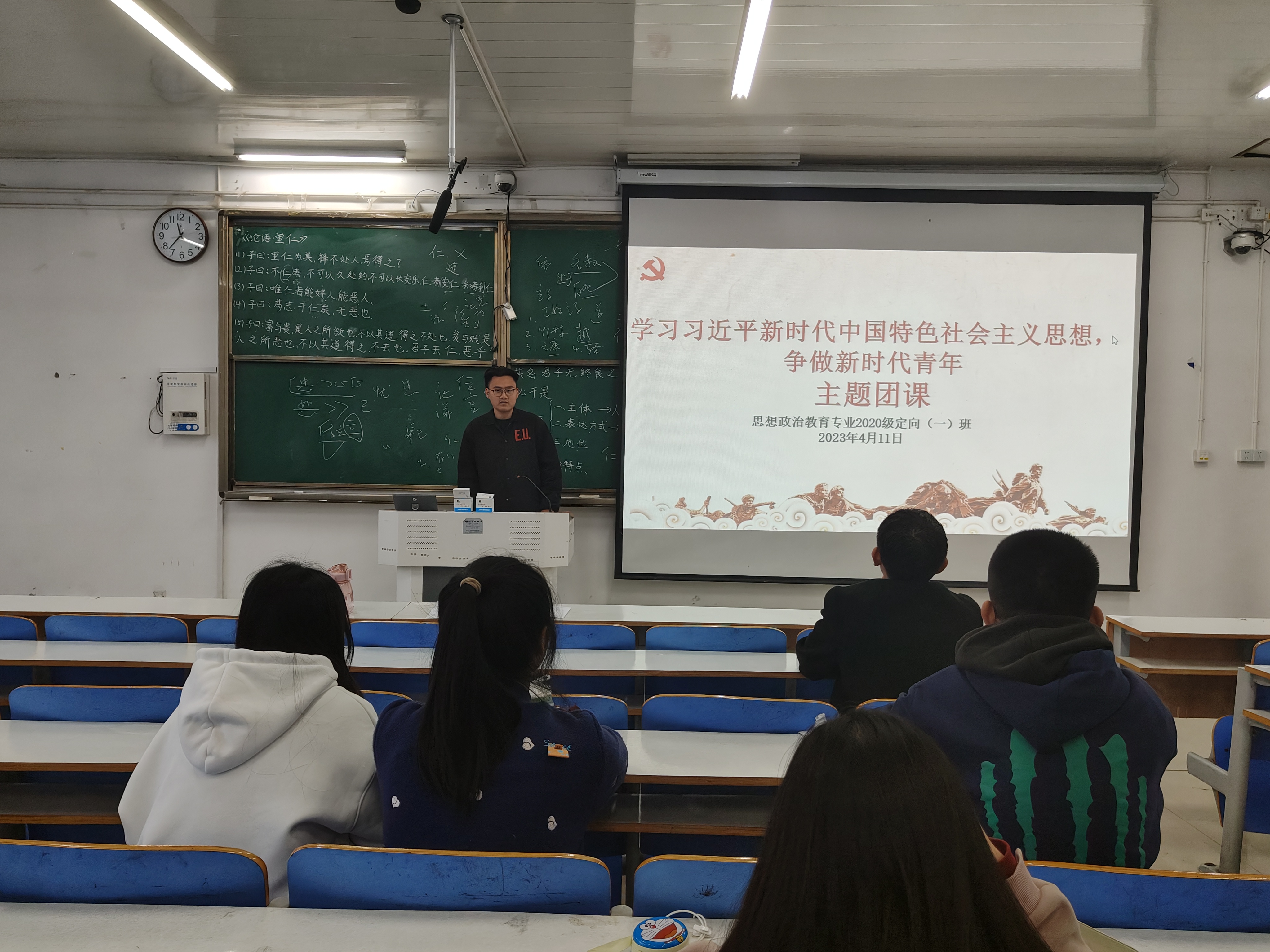 4月11日上午,德赢AC米兰官网2020级思想政治教育定向一班在社科楼514教室顺利开展了学习习近平新时代中国特色社会主义思想,争做新时代青年主题团课。此次团课由团支书朱紫峰主持。