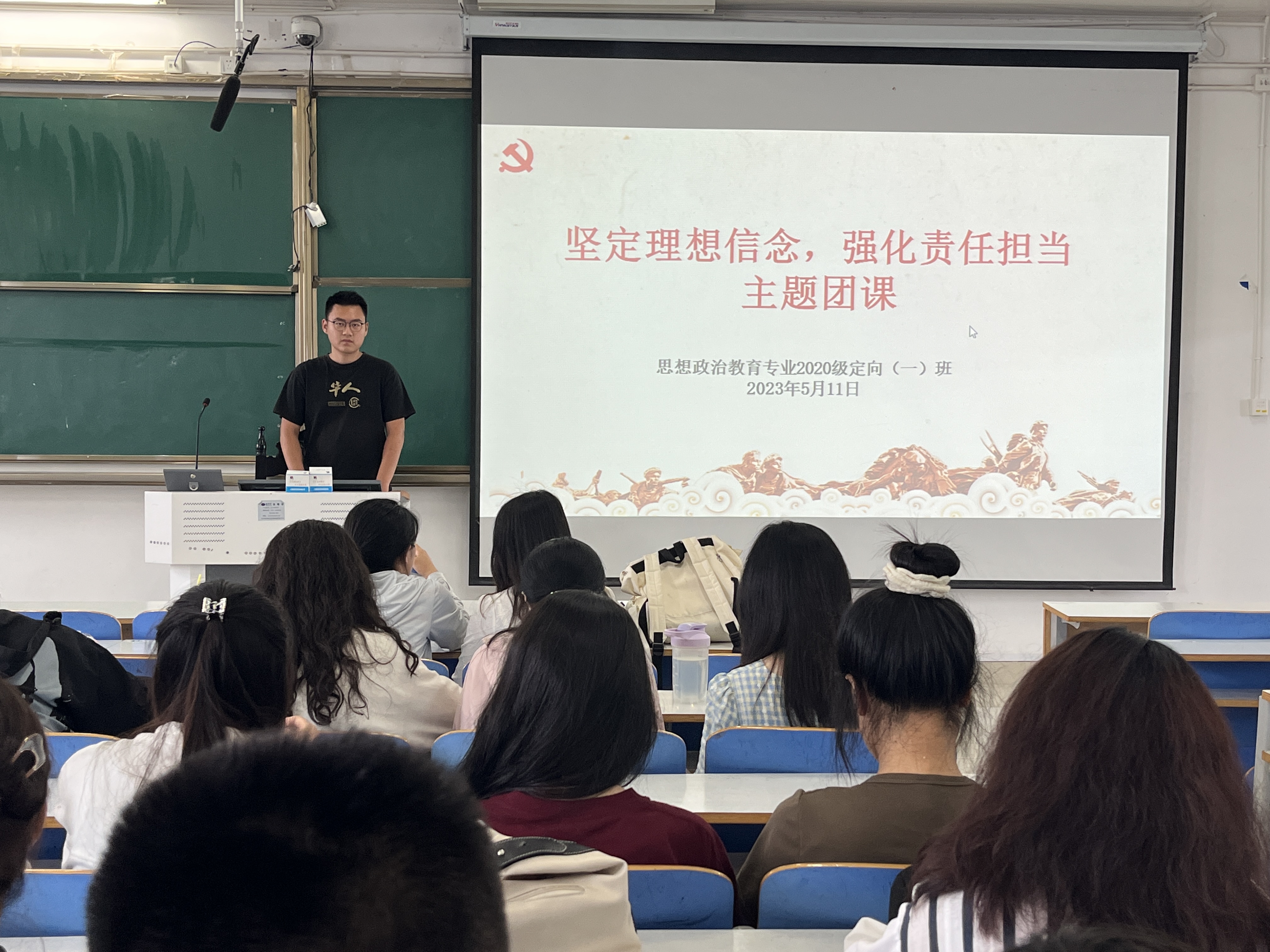 5月11日下午,德赢AC米兰官网2020级思想政治教育定向一班在社科楼514教室顺利举行了坚定理想信念,强化责任担当主题班会。此次班会由团支书朱紫峰主持。