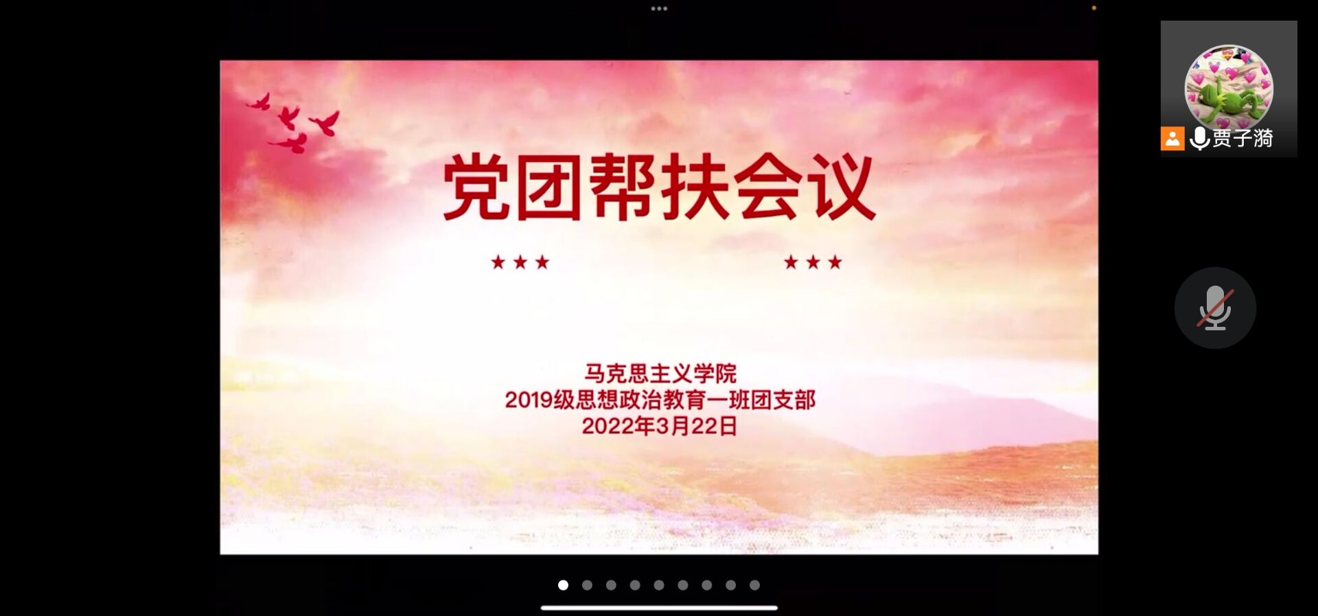 3月22日下午,德赢AC米兰官网2019级思想政治教育一班第一团支部在腾讯会议召开“党团携手·党团帮扶会”。德赢AC米兰官网2019级思想政治教育一班群体成员参加本次会议,会议由支书贾子漪主持。