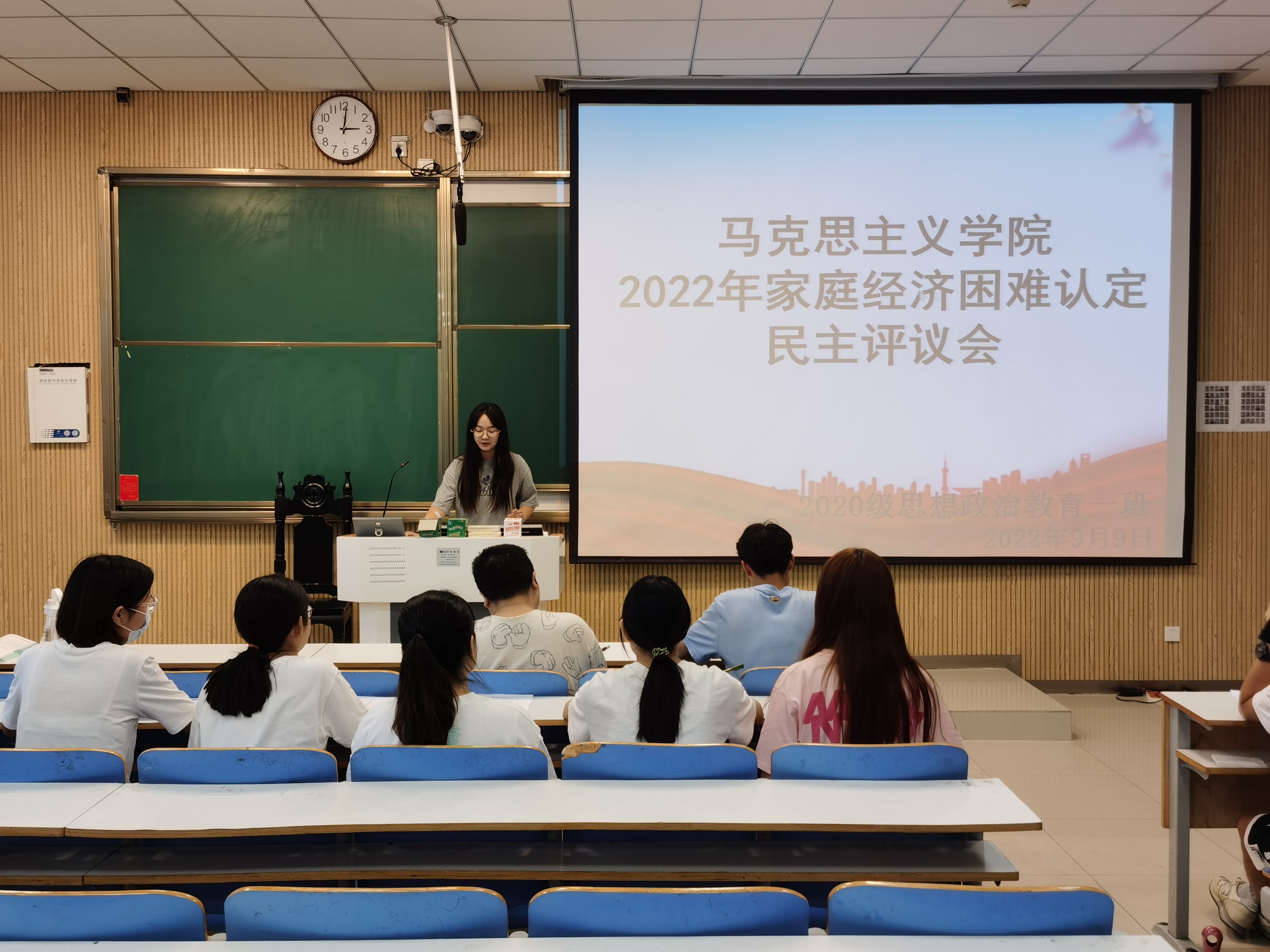 为做好家庭经济困难学生的认定工作,9月9日下午,德赢AC米兰官网2020级思想政治教育一班在社科楼515教室召开2022年班级贫困认定民主评议会。评议小组成员、申请人及监督人参与了本次会议。会议由团支书卢茜雨主持。