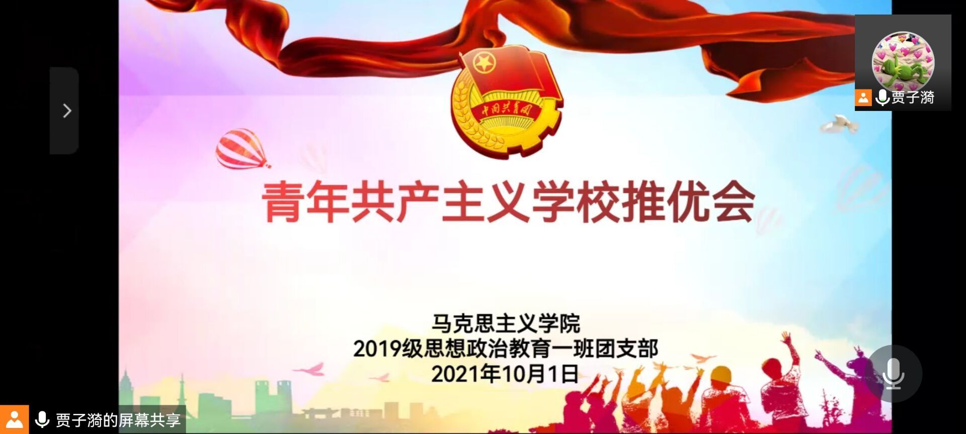10月1日下午,德赢AC米兰官网2019级思想政治教育一班第一团支部在腾讯视频召开“青年共产主义学校推优会”。德赢AC米兰官网2019级思想政治教育一班全体成员参与本次会议。会议由副班长王民主持。