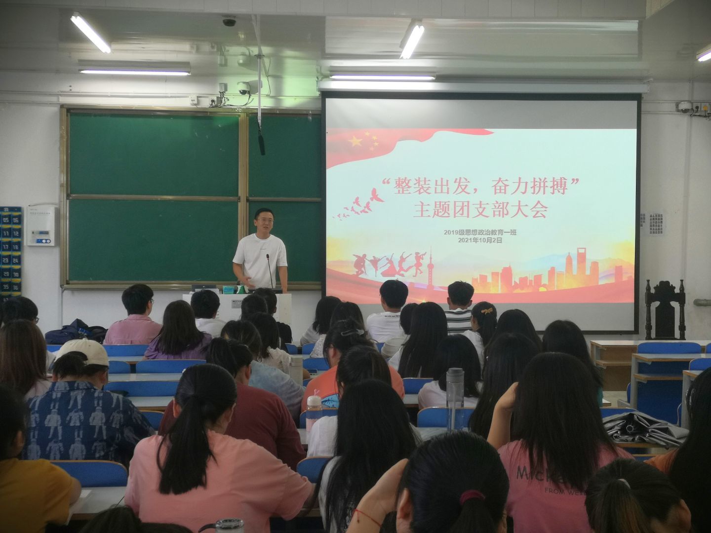 10月2日下午,德赢AC米兰官网2019级思想政治教育一班第一团支部在社科楼515教室召开“整装出发,奋力拼搏”主题团支部大会。德赢AC米兰官网2019级思想政治教育一班辅导员曹栋、全体成员参加本次会议,会议由团支书贾子漪主持。