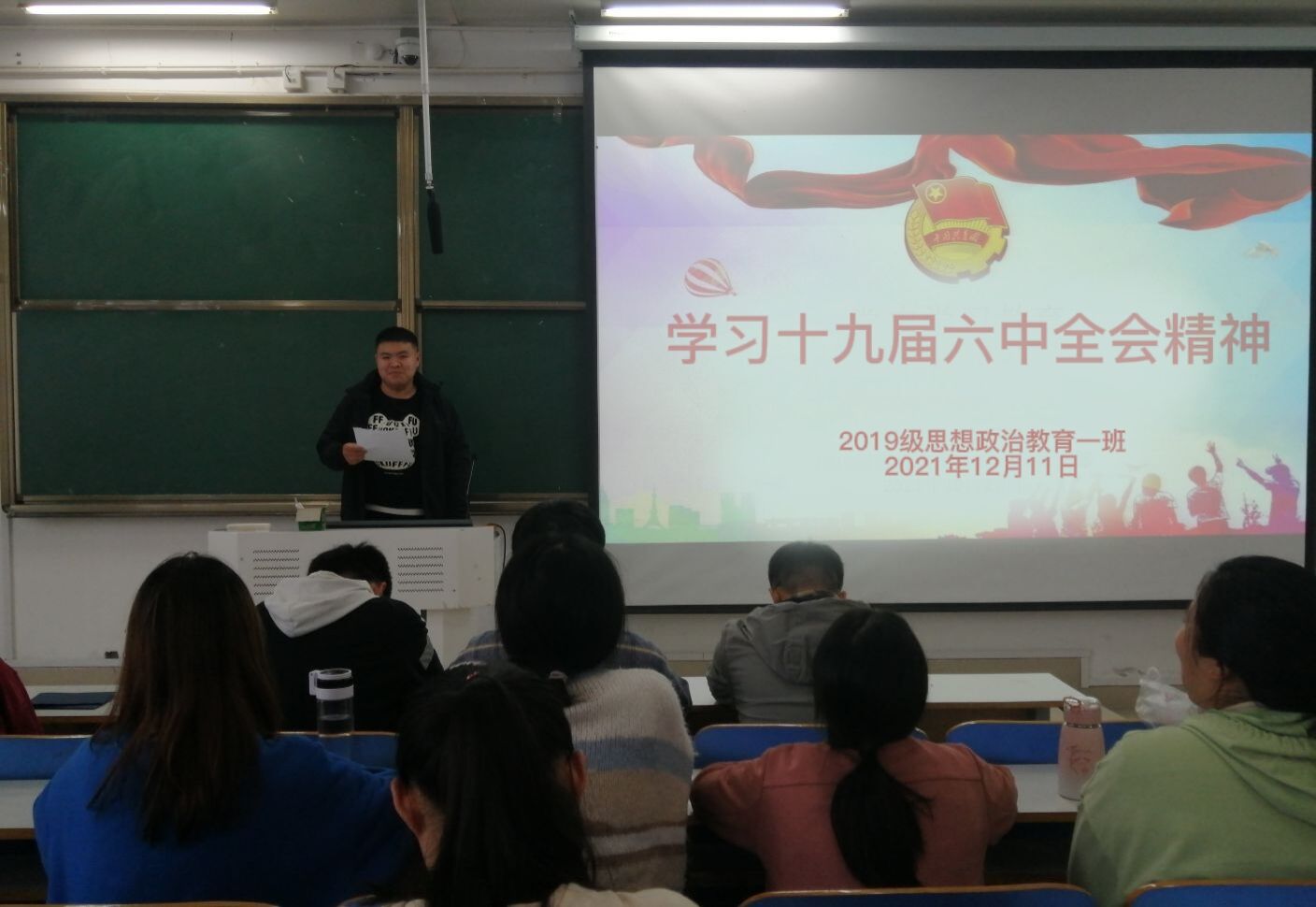 12月11日上午,德赢AC米兰官网2019级思想政治教育一班第一团支部在社科楼516教室召开“学习党的十九届六中全会精神”主题团课。德赢AC米兰官网2019级思想政治教育一班团支部全体团员参加本次团课。团课由团支书贾子漪主持。