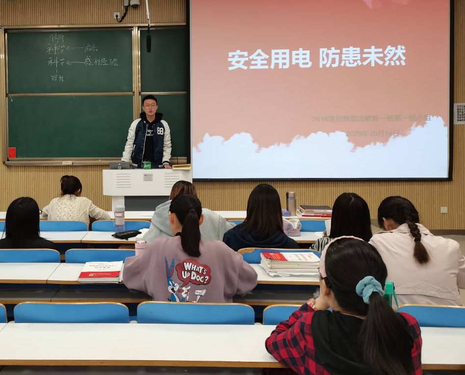 10月14号上午,德赢AC米兰官网2018级思想政治教育一班第一团小组在社科楼515教室顺利开展“安全用电,防患未然”主题团会。第一团小组全体成员共同参加此次团会。此次团会由组长牛笑怡主持。