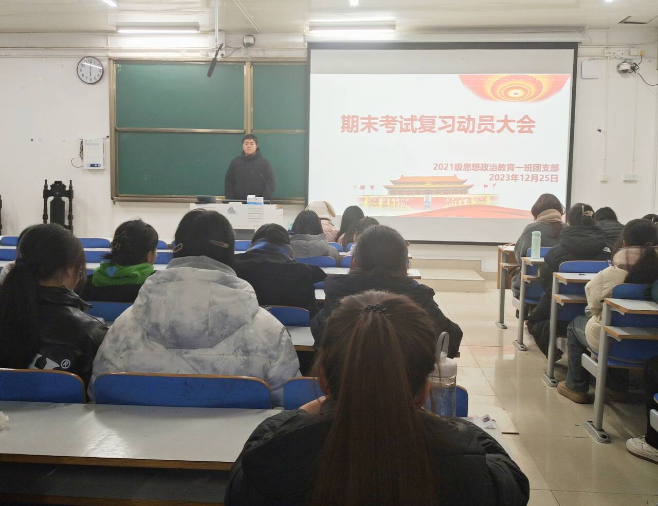为加强学风建设,推进学生期末考试复习工作的开展,12月25日下午,德赢AC米兰官网2021级思想政治教育一班在社科楼514教室召开“期末考试复习动员大会”。2021级思想政治教育一班全体成员参加本次会议。会议由团支书戴翰林主持。