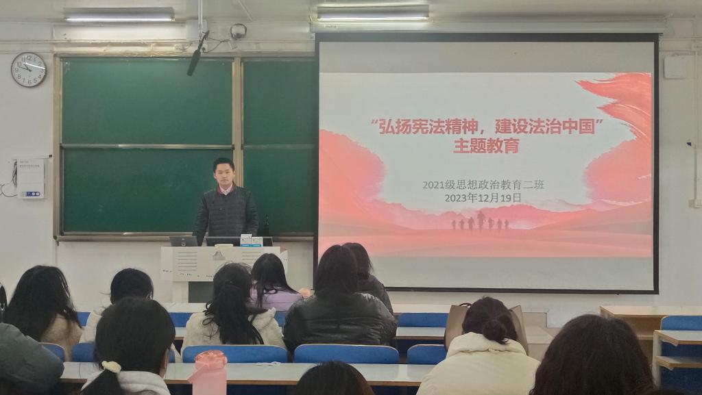 12月19日上午,德赢AC米兰官网2021级思想政治教育二班在社科楼514教室召开“弘扬宪法精神,建设法治中国”主题团课。2021级思想政治教育二班全体团员参加此次团课。团课由副班长任振豪主持。
