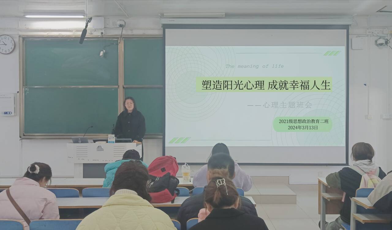 3月13日上午,德赢AC米兰官网2021级思想政治教育二班在社科楼514教室召开“塑造阳光心理,成就幸福人生”心理主题班会。2021级思想政治教育二班全体同学参加此次班会。班会由心理委员李蕾蕾主持。