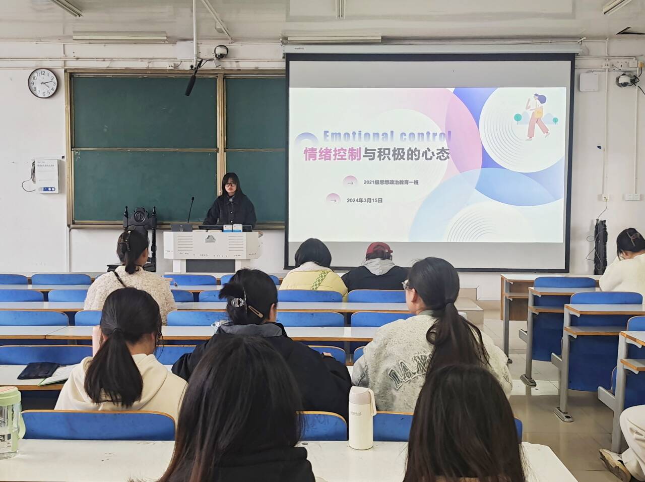 3月15日下午,德赢AC米兰官网2021级思想政治教育一班在社科楼514教室召开“情绪控制与积极的心态”心理班会。2021级思想政治教育一班全体学生参加此次班会。班会由心理委员黄小妍主持。