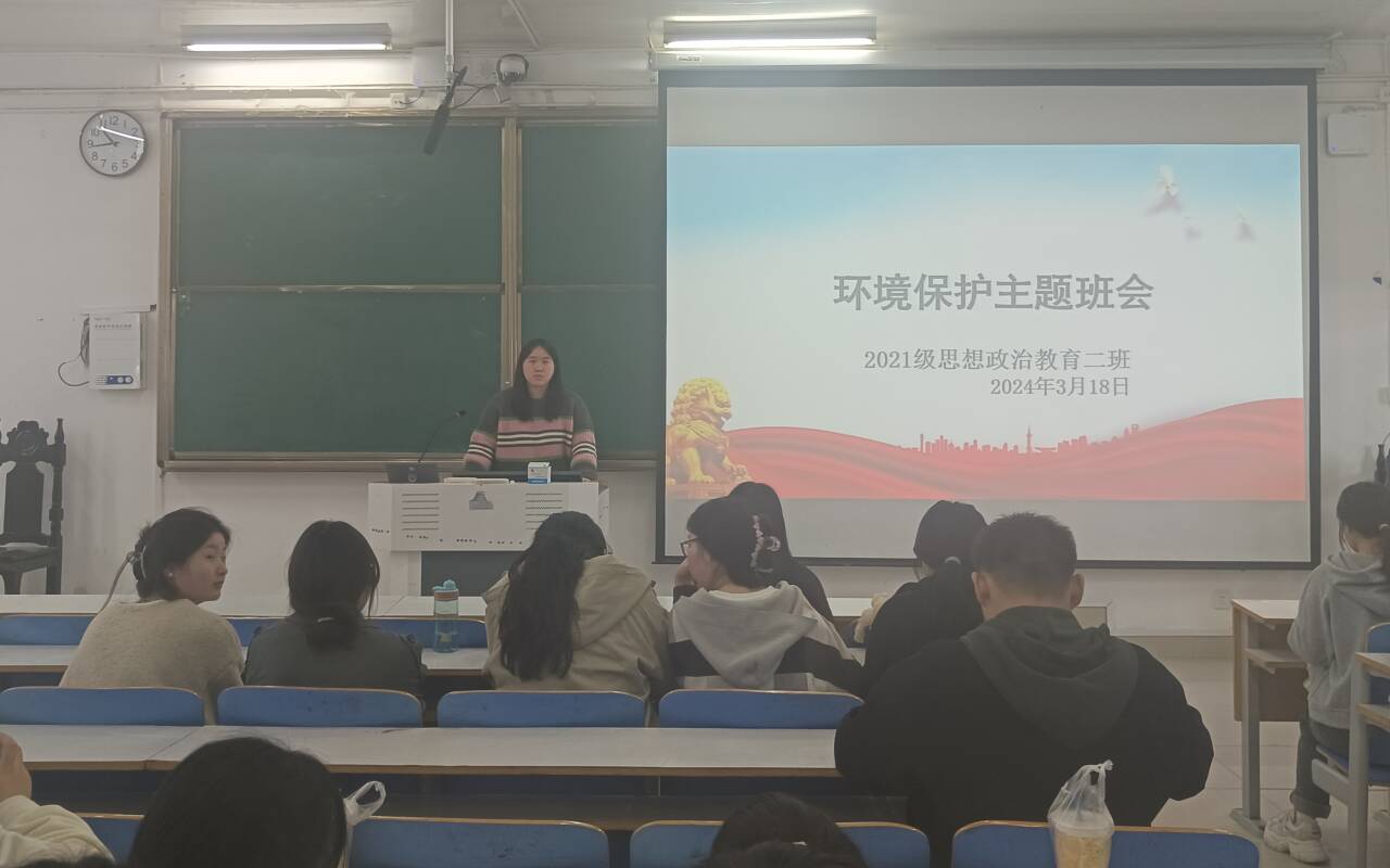 3月18日上午,德赢AC米兰官网2021级思想政治教育二班在社科楼514教室召开环境保护主题班会。2021级思想政治教育二班全体同学参加此次主题班会。班会由团支书王婧欣主持。