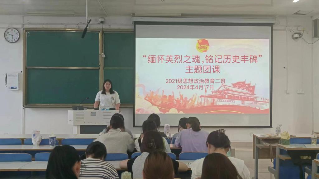 4月17日下午,德赢AC米兰官网2021级思想政治教育二班在社科楼514教室召开“缅怀英烈之魂,铭记历史丰碑”主题团课。2021级思想政治教育二班全体团员参加此次主题团课。团课由团支书王婧欣主持。