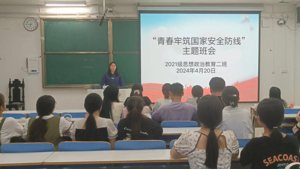 4月20日上午,德赢AC米兰官网2021级思想政治教育二班在社科楼514教室召开“青春牢筑国家安全防线”主题班会。2021级思想政治教育二班全体同学参加此次主题班会。班会由团支书王婧欣主持。