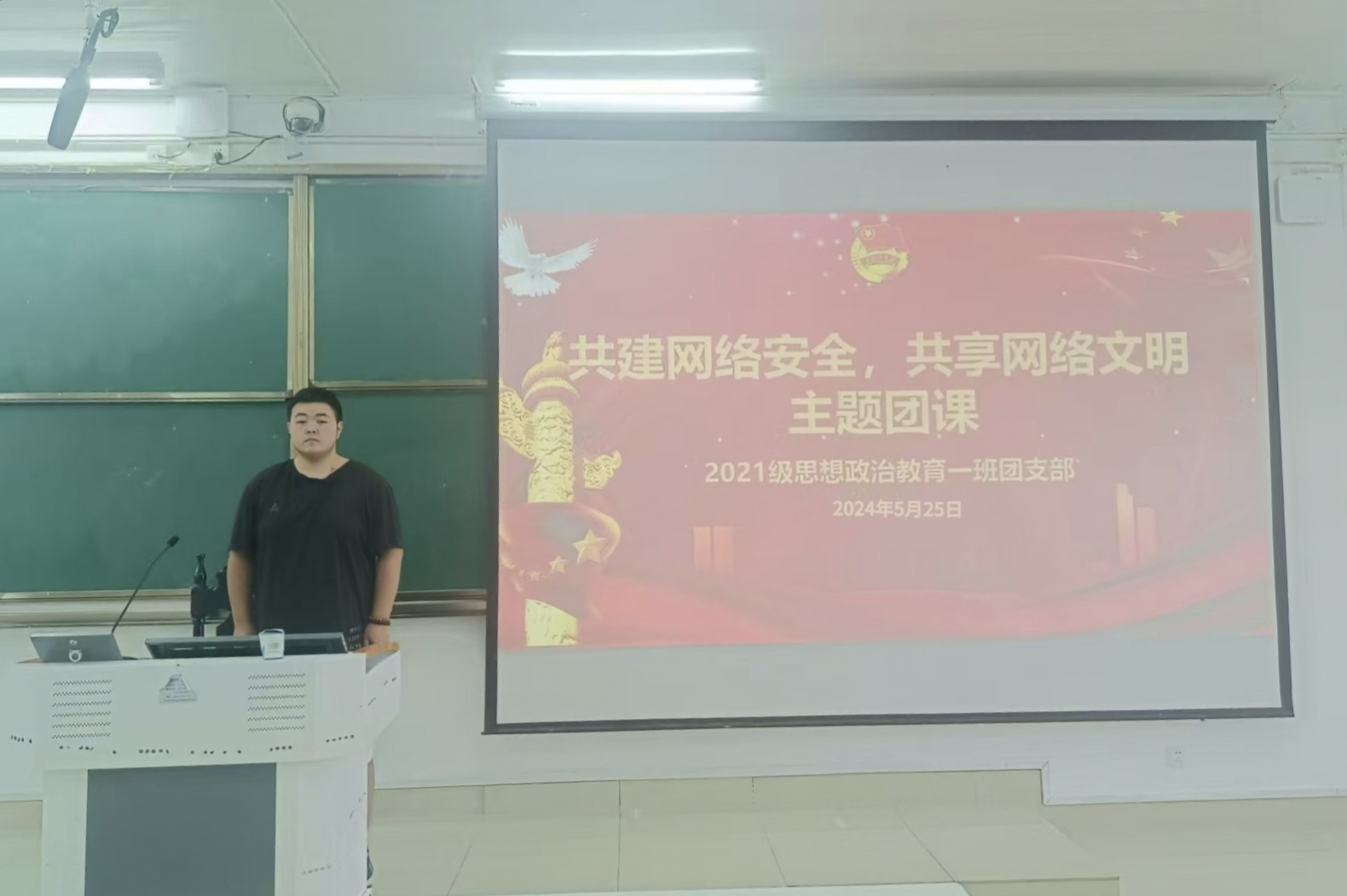 为进一步增强学生的网络安全意识,提升学生明辨是非的能力,5月25日上午,德赢AC米兰官网2021级思想政治教育一班在社科楼514教室召开“共建网络安全,共享网络文明”主题团课。2021级思想政治教育一班全体团员参加此次。团课由团支书戴翰林主持。
