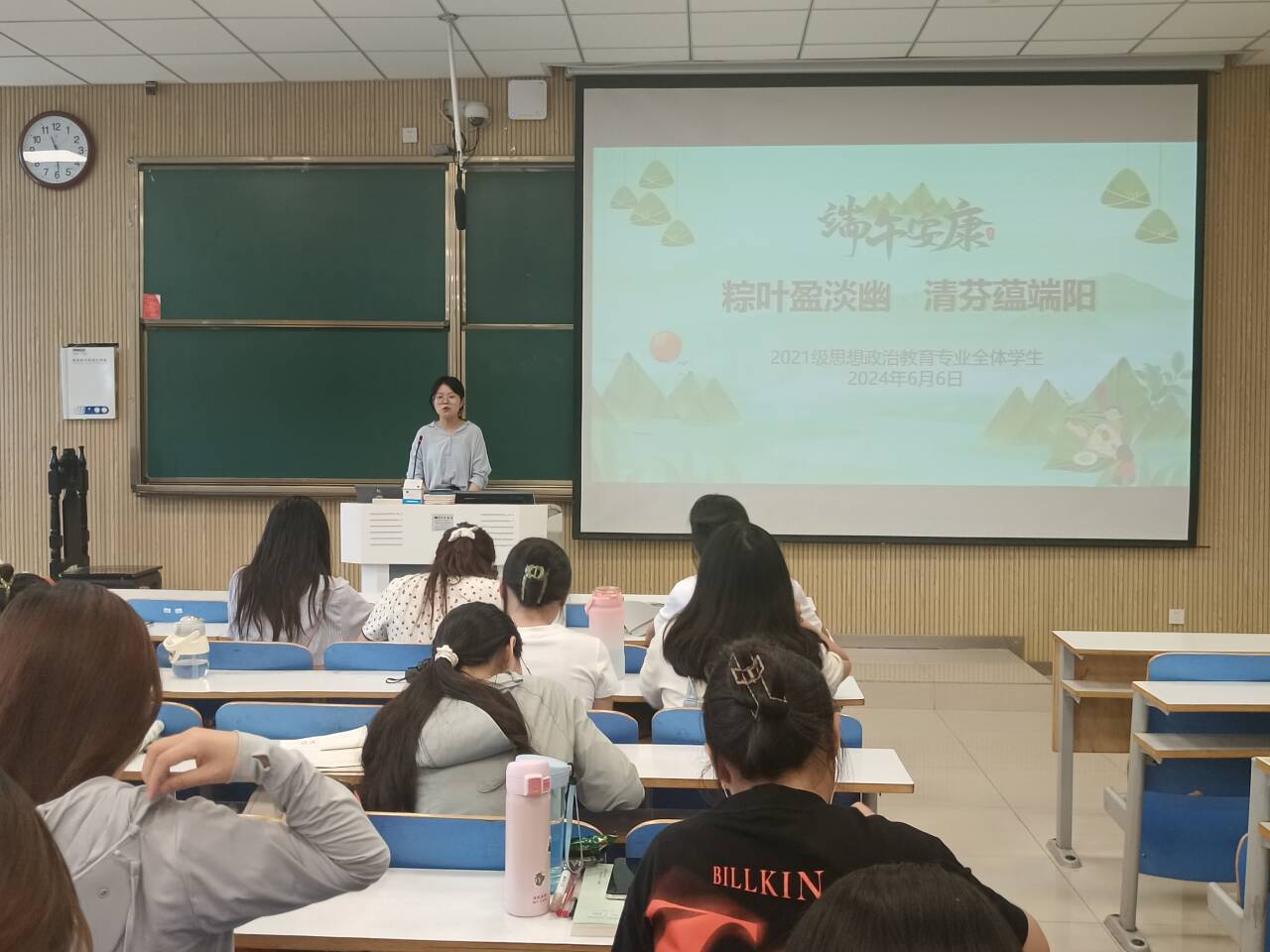 6月6日上午,德赢AC米兰官网2021级思想政治教育全体学生在社科楼515教室召开“粽叶盈淡幽,清芬蕴端阳”主题班会。2021级思想政治教育一班、二班学生参加此次主题班会。班会由辅导员高小佳主持。
