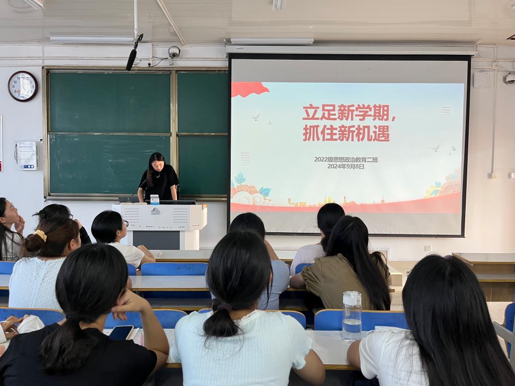 为帮助同学们尽快调整好状态、投入新学期生活,9月8日下午,德赢AC米兰官网2022级思想政治教育二班在社科楼514教室召开“立足新学期,抓住新机遇”主题班会。德赢官网2022级思想政治教育二班全体成员共同参与此次班会。会议由班主任杨春艳主持。