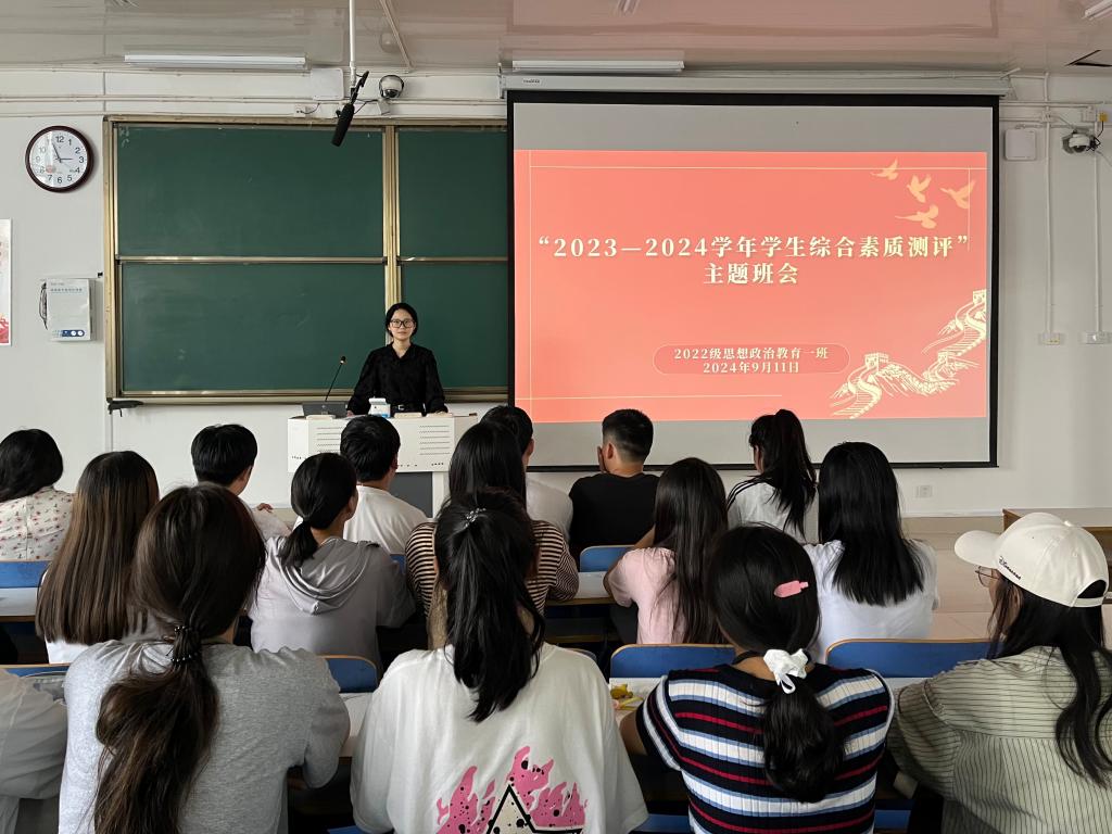 9月11日下午,德赢AC米兰官网2022级思想政治教育一班在社科楼514教室召开“2023-2024学年学生综合素质测评”主题班会,德赢官网2022级思想政治教育一班班主任王明园和一班全体同学共同参与本次班会,班会由团支书李佳茹主持。
