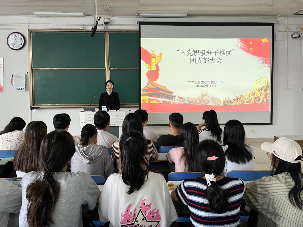 为进一步加强党组织建设,充实党的新生力量,9月11日下午,德赢AC米兰官网2022级思想政治教育一班在社科楼514教室召开“入党积极分子推优”团支部大会,德赢官网2022级思想政治教育一班全体同学共同参与本次会议,会议由团支书李佳茹主持。