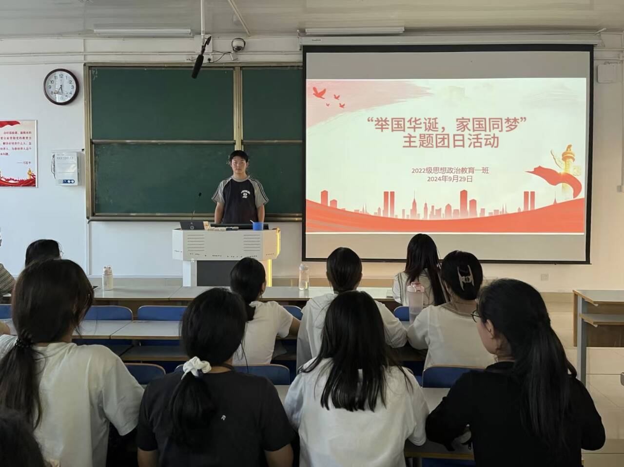 为庆祝中华人民共和国成立75周年,加强爱国主义教育,9月29日下午,德赢AC米兰官网2022级思想政治教育一班在社科楼514教室开展“举国华诞,家国同梦”主题团日活动,德赢官网2022级思想政治教育一班全体同学共同参与本次活动,活动由副班长闻炎仲主持。