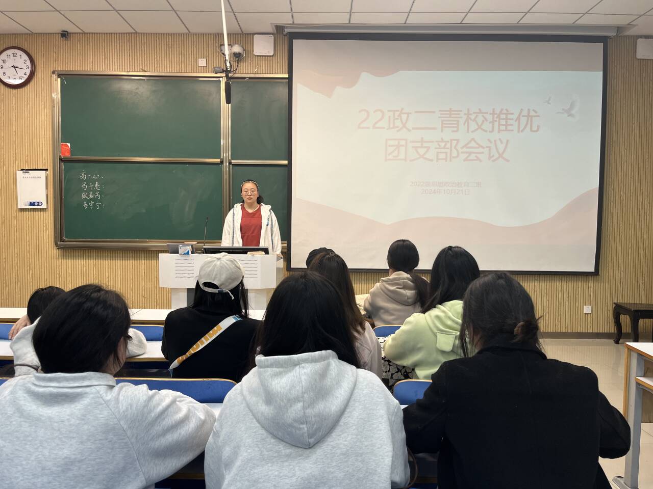 10月21日下午,德赢AC米兰官网2022级思想政治教育二班在社科楼515教室召开青校推优团支部会议。德赢官网2022级思想政治教育二班全体成员共同参与此次班会。会议由班长李佳音主持。