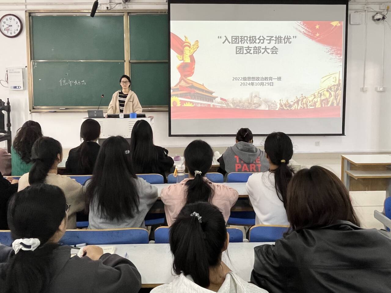 10月29日上午,德赢AC米兰官网2022级思想政治教育一班在社科楼514教室召开“入团积极分子推优”团支部大会。德赢官网2022级思想政治教育一班全体同学共同参与本次会议,会议由团支书李佳茹主持。